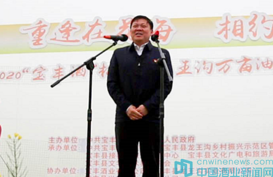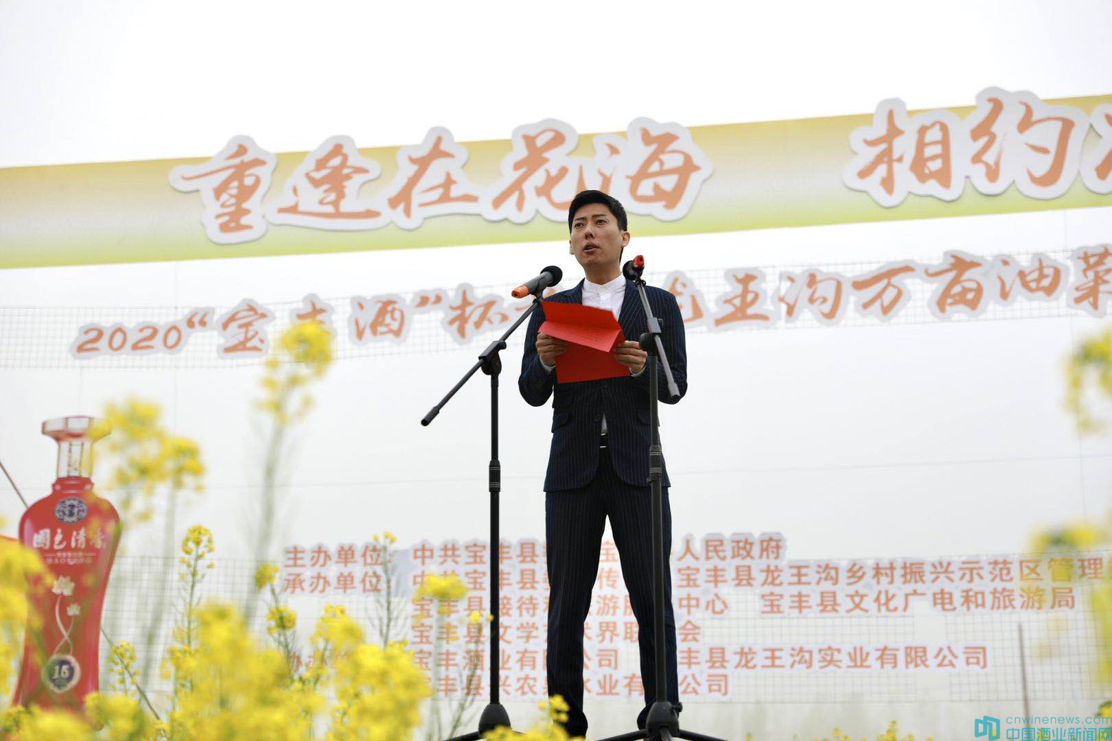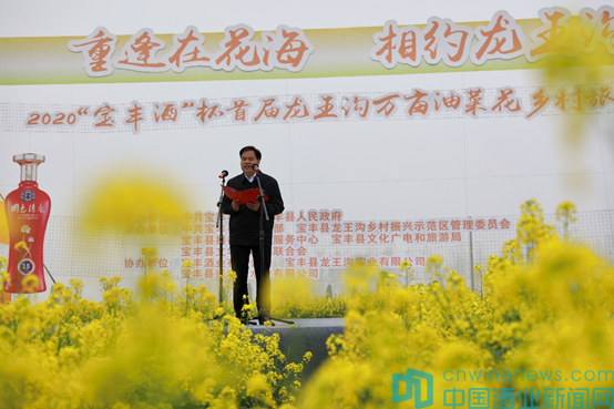 開幕式上,寶豐酒業有限公司董事長王若飛也發表了熱情洋溢的致辭,他在致辭中講到,寶豐酒歷史悠久,文化底蘊深厚。寶豐酒作為中國兩大清香名酒之一,國家級非物質文化遺產,豫酒標桿企業,寶豐縣的龍頭企業和文化名片,此次傾力贊助2020“寶豐酒”杯首屆龍王溝萬畝油菜花鄉村旅游節,是一次展示企業風采、宣傳寶豐品牌的絕佳機會。在社會各界的支持下,寶豐酒將堅定不移走“農文旅”融合發展道路,持續提升寶豐酒品牌的知名度和美譽度。