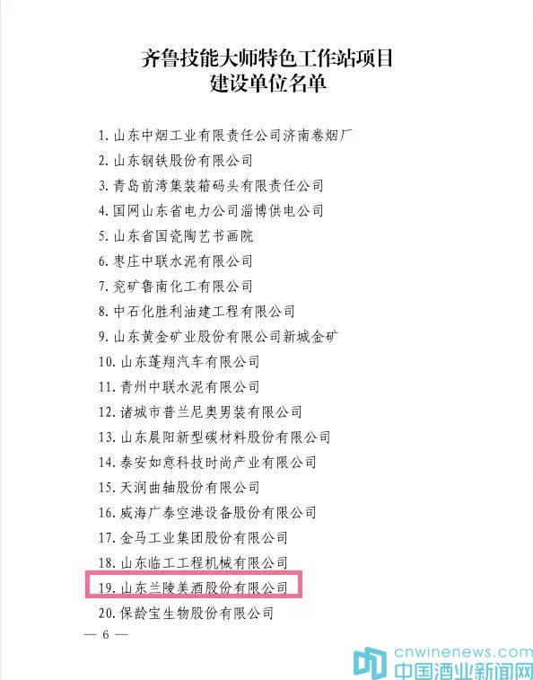 近日,山東省人力資源和社會保障廳公布“齊魯技能大師特色工作站項目建設單位名單”,山東蘭陵美酒股份有限公司成功獲選。