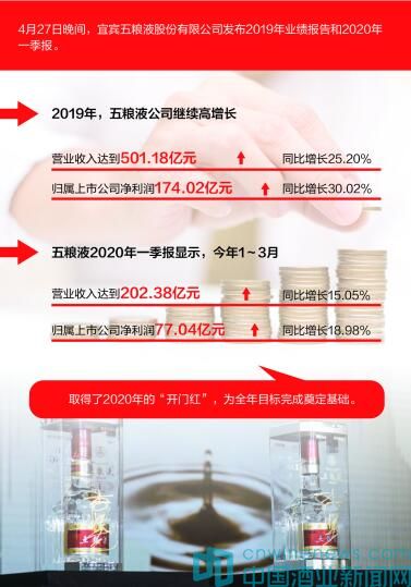 五糧液一季報則顯示,今年1~3月,五糧液公司實現營業收入202.38億元,同比增長15.05%;歸屬于上市公司的凈利潤77.04億元,同比增長18.98%,取得了2020年的“開門紅”,為全年目標完成奠基。