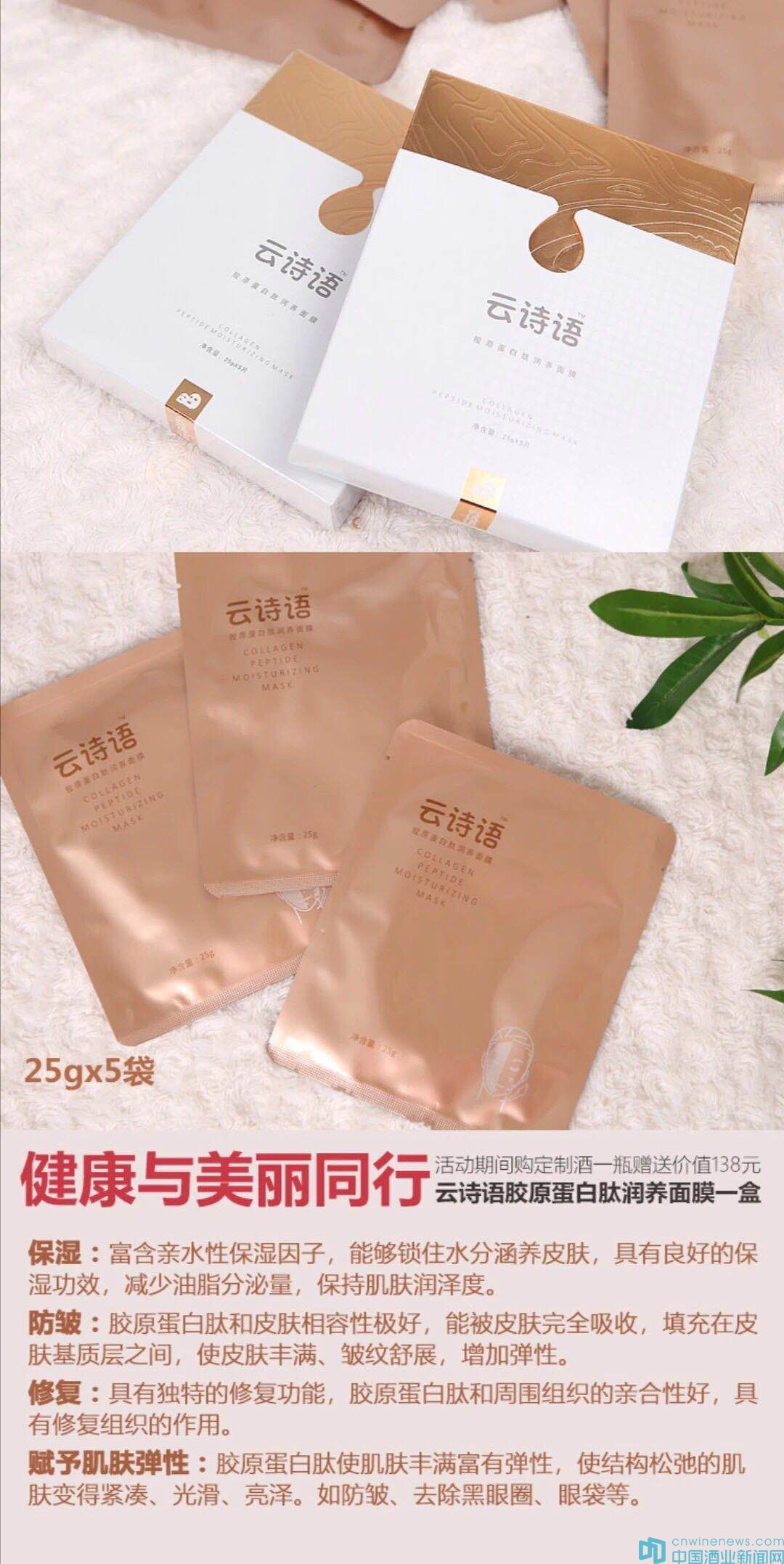 活動期間購定制酒贈送“云詩語”膠原蛋白肽潤養面膜一盒