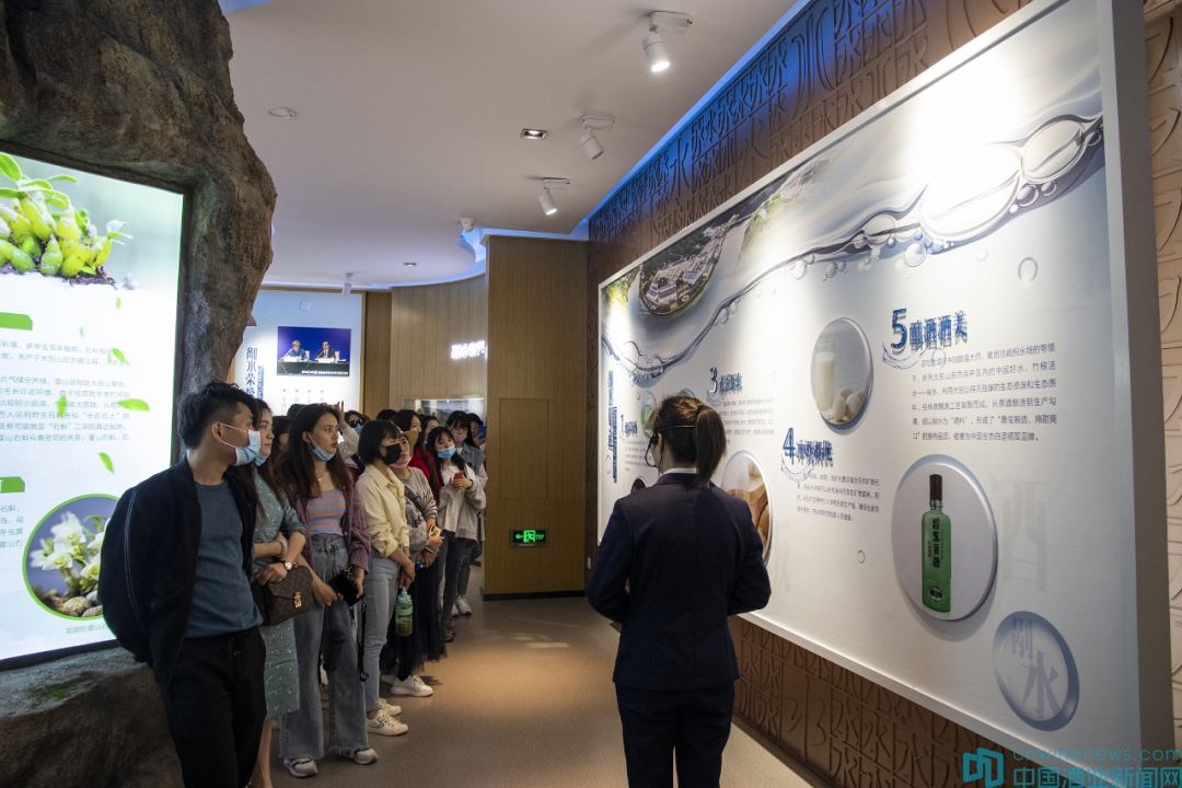 緊接著,選手們來到野嶺水文化博物館進行參觀學習。水質好,酒才好。發源于大別山主峰白馬尖的山泉水,流經茫茫竹海,經地下竹根層層過濾,被當地人稱為“剮水”,又叫“竹根水”。水中含有豐富的鍶、硒、鋅等有益于釀酒的微量元素,迎駕貢酒的釀造用水全部來自這種山泉,使酒質得到保證。
