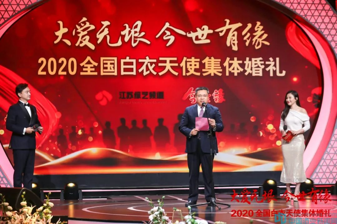 集體婚禮在江蘇廣播電視總臺主持人陳怡、曹洋主持下正式開始。新人們身穿潔白的禮服,如愿牽起知心愛人的手,走進婚姻的殿堂,開啟幸福旅程。江蘇對口支援黃石醫(yī)療隊總指揮、南京醫(yī)科大學(xué)副校長魯翔,國家衛(wèi)健委專家組成員、蘇北人民醫(yī)院副院長重癥醫(yī)學(xué)科主任鄭瑞強通過視頻形式為新人證婚。江蘇援湖北醫(yī)療隊隊員、南京醫(yī)科大學(xué)附屬逸夫醫(yī)院重癥醫(yī)學(xué)科副主任醫(yī)師賈凌,江蘇最美醫(yī)務(wù)工作者徐州醫(yī)科大學(xué)附屬醫(yī)院ICU主任醫(yī)師趙文靜也為新人們送來了誠摯的祝福。