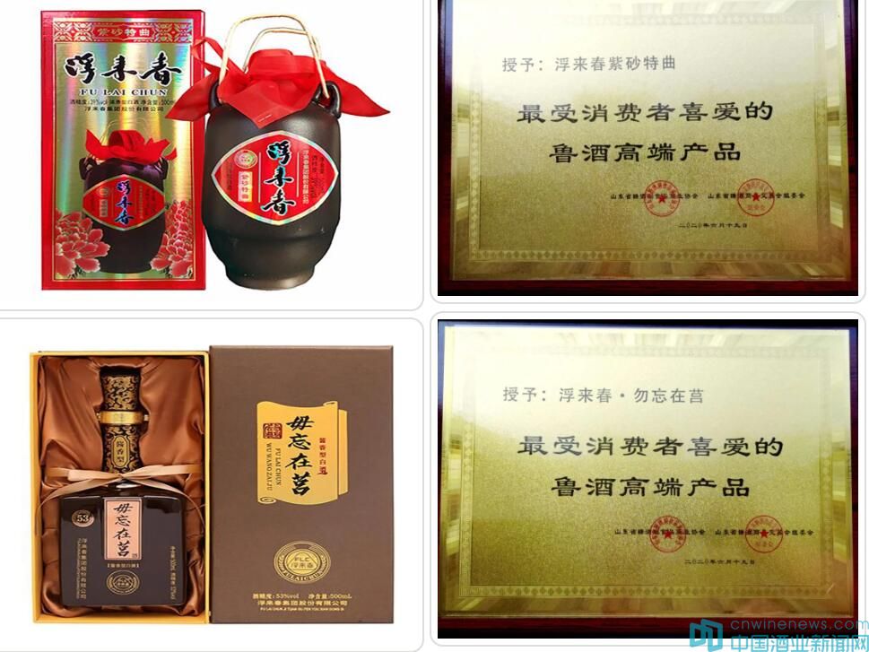 6月19日,2020年(第83屆)山東省糖酒商品交易會在淄博國際會展中心先期舉行“最受消費者喜愛的魯酒高端產品”授牌頒獎典禮。會上,浮來春集團股份有限公司生產的濃香型浮來春紫砂特曲,醬香型浮來春毋忘在莒酒被山東省糖酒副食品商業協會 、山東省糖酒商品交易會組委會授予“最受消費者喜愛的魯酒高端產品”榮譽稱號。