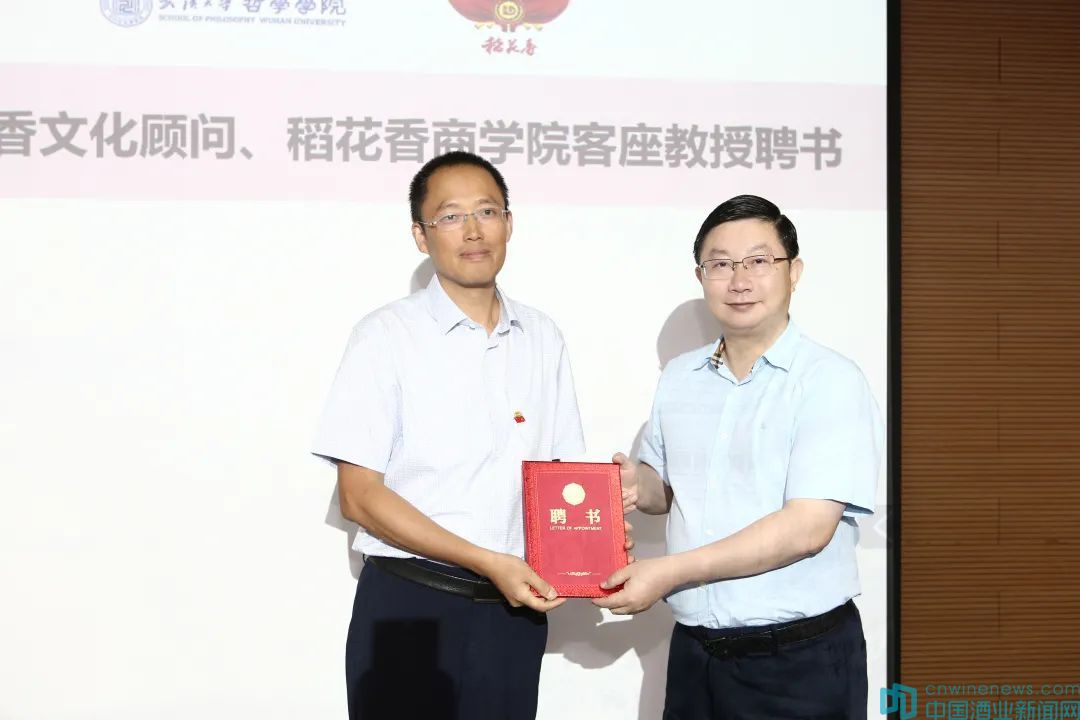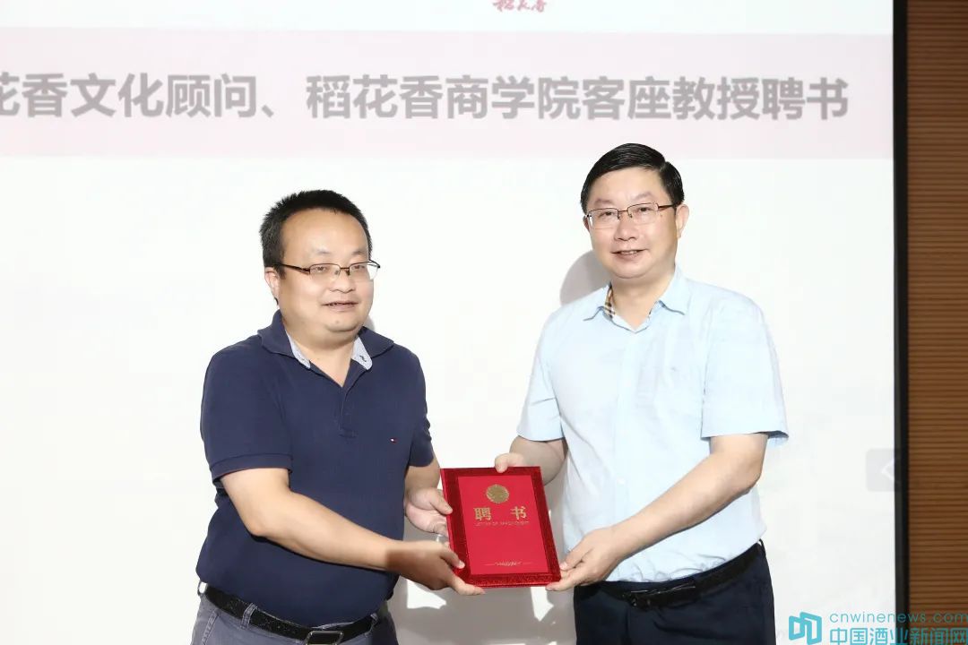 蔡開云(右)為劉林青(左)頒發“稻花香商學院客座教授”聘書