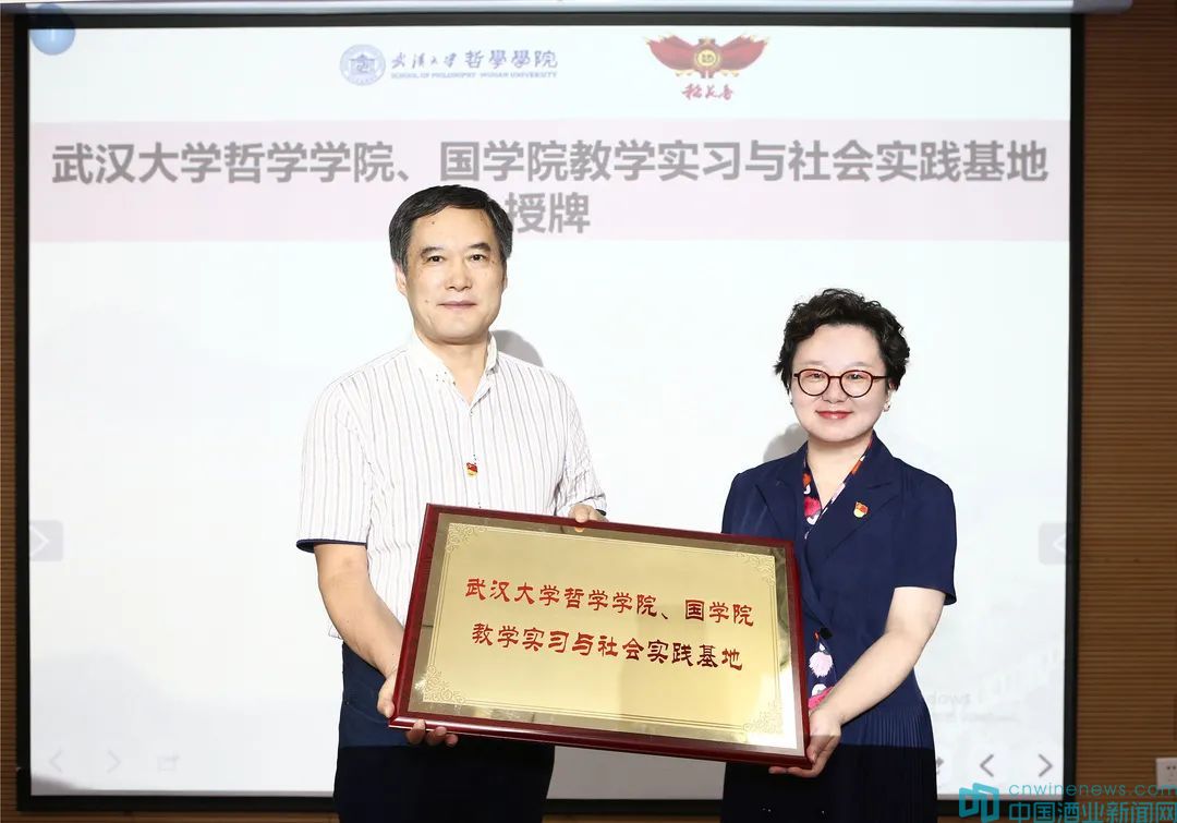 活動現場,在與會領導和黨員代表的共同見證下,稻花香集團黨委副書記方麗華與武漢大學哲學學院黨委副書記劉義勝代表雙方簽訂“攜手共建、助力重振”合作協議。宜昌市委兩新工委專職副書記、市黨員電化教育中心(遠程辦)主任向鉍成為武漢大學哲學學院黨委書記龍滔頒發“稻花香集團黨建指導員”聘書。蔡開云為武漢大學國學院副院長、教授孫勁松,武漢大學經管學院教授劉林青分別頒發“稻花香文化顧問”“稻花香商學院客座教授”聘書。武漢大學哲學學院院長、長江學者吳根友為稻花香集團“武漢大學哲學學院、國學院教學實習與社會實踐基地”授牌,方麗華代表稻花香集團接牌。