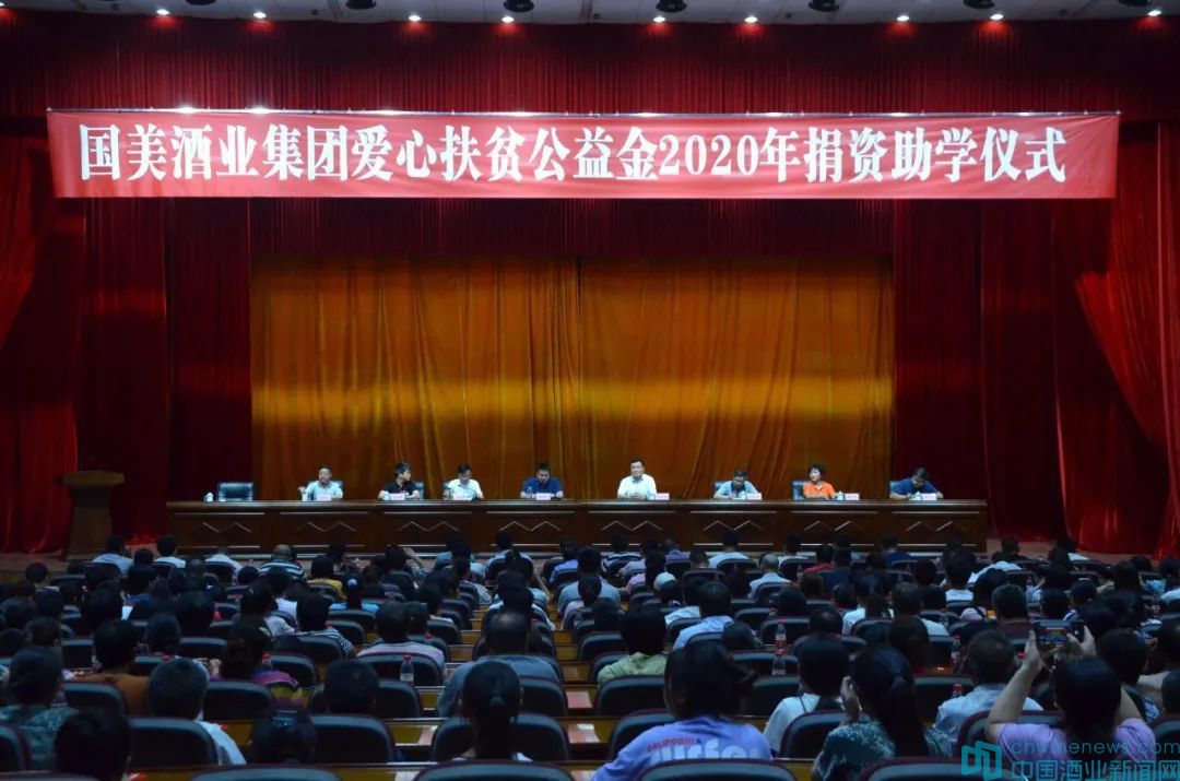 2020年8月27日,宜賓國美酒業股份有限公司愛心扶貧公益金2020捐資助學儀式在宜賓長寧縣會議中心舉行。儀式由長寧縣委常委、縣委辦主任惠德宏主持,縣人大常委會副主任余益有,縣政府副縣長王志剛,縣政協副主席黎星科,縣關工委副主任蔣華芳,縣人大常委會原副主任、扶貧開發協會會長何貴生,縣教體局局長張學元,國美酒業集團董事長武玉杰,以及全縣各鄉鎮、縣級各部門、企事業單位分管負責人,全縣規模以上企業代表、全縣各社會團體代表、學校教師代表,學生及家長代表200余人參加儀式。
