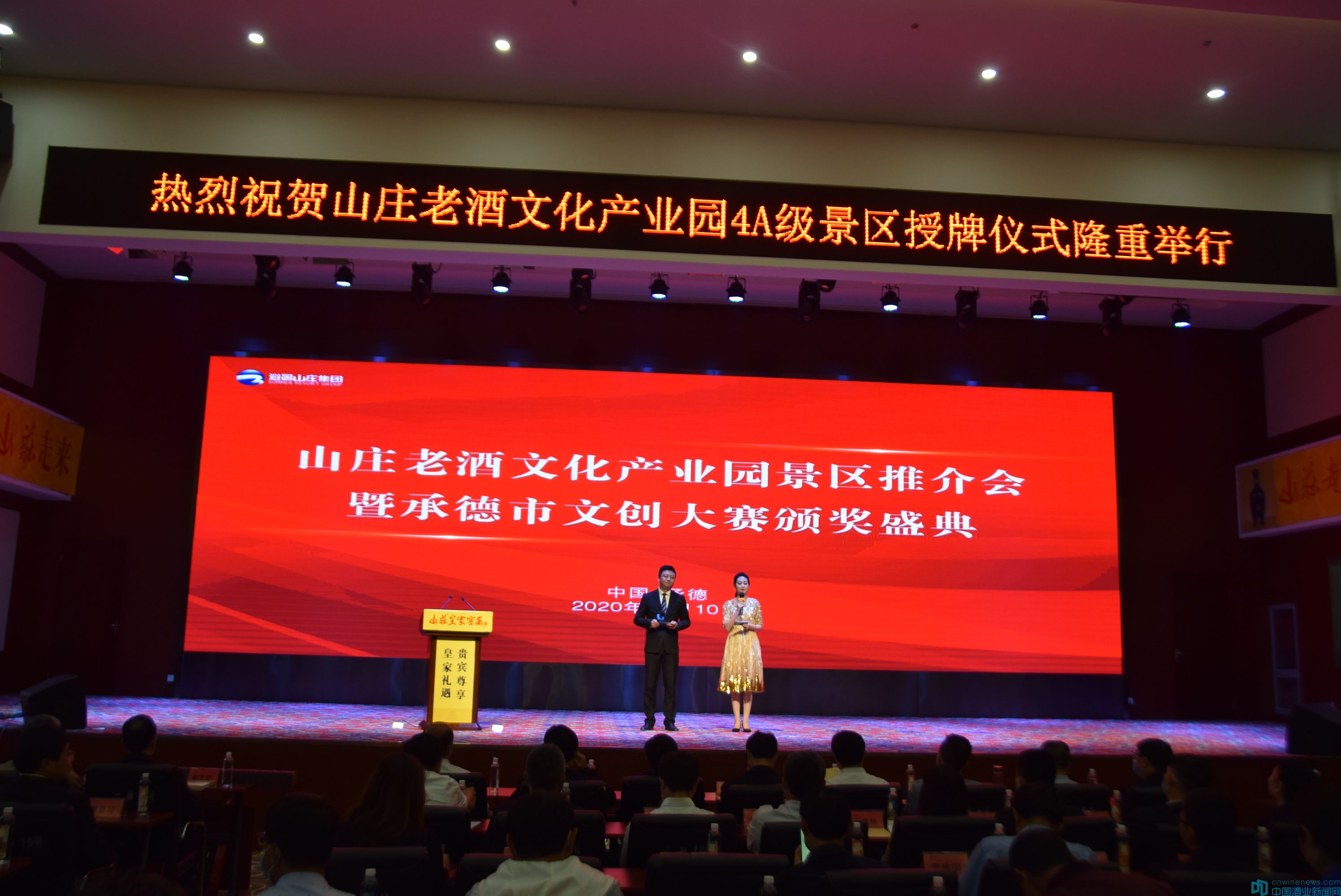 9月10日,由河北山莊老酒股份有限公司主辦、承辦的山莊老酒文化產(chǎn)業(yè)園4A景區(qū)授牌儀式暨2020“山莊老酒杯”承德市文創(chuàng)大賽頒獎(jiǎng)盛典在平泉市舉行。