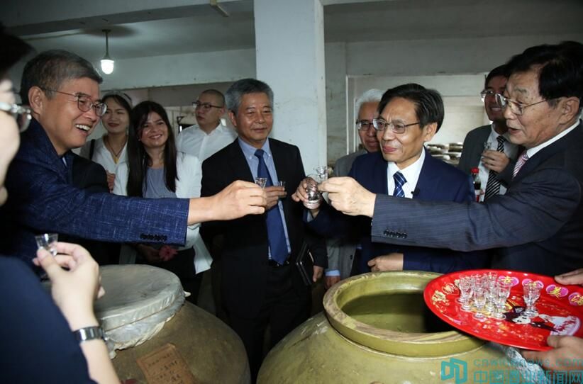駐華使節在梁明鋒的帶領下,參觀了三百余畝的國威酒業生產基地,感受國威醬酒釀造生產的歷史變遷,體驗醬酒生產工藝,傾聽國威“12987”工藝大樓寓意和梁董創業史,見證梁明鋒大師的匠心精神。他們一路觀看一路詳細詢問國威醬酒的生產工藝,駐華使節興致勃勃的親自參與了生產作業。經過兩個萬噸酒庫,并到8000噸陶壇庫參觀并品鑒20年的老酒后 ,越南駐華大使范星梅興奮地說:“國威酒業規模大、老酒多、 第一次看到醬酒的釀造生產很神秘,國威厲害!”