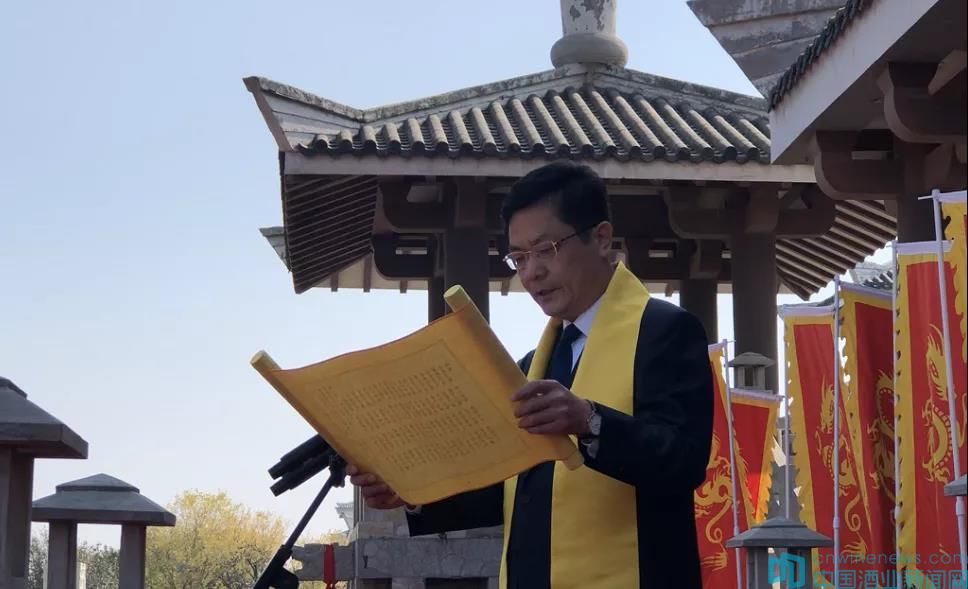 隨后,景芝酒業總經理來安貴恭誦祭文,副總經理王世恩率領全體祭酒祖人員誦讀景芝傳世酒經,向酒祖三鞠躬,虔誠敬謝,共同祈愿景芝酒業基業長青,美酒世代飄香。