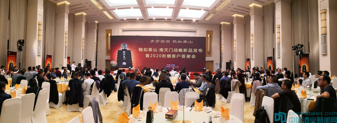 濟南,南郊,南天門。泰山,泰卦,泰酒。天地作合,緣來已定。10月11日上午,濟南全國秋糖會正式開幕前夕,由泰山酒業舉辦的“穩如泰山·南天門戰略新品發布暨2020秋糖客戶答謝會”在濟南南郊賓館盛大召開。這是一場備受行業矚目的新品上市活動,也是泰山酒業開創高端魯酒營銷新局面的重要官宣。