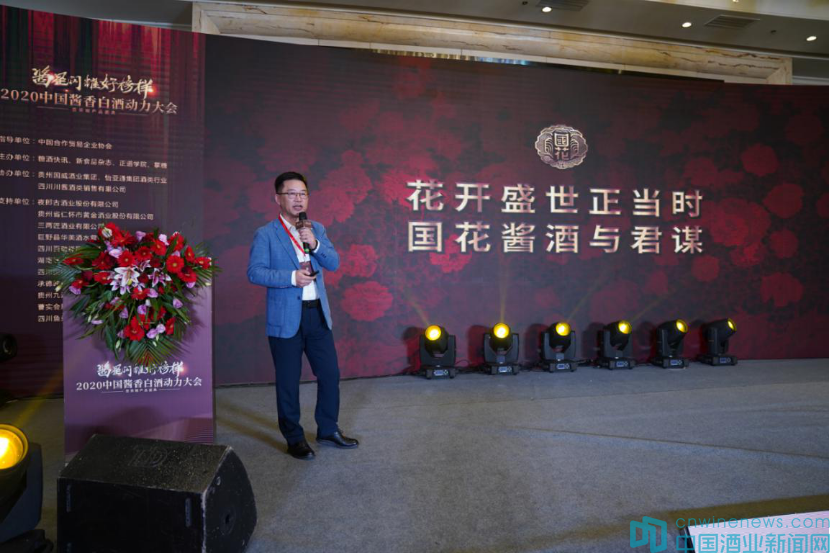 激動(dòng)人心的頒獎(jiǎng)環(huán)節(jié)過(guò)后, 國(guó)花酒業(yè)集團(tuán)有限公司總經(jīng)理薛曉文登場(chǎng),他帶來(lái)的PPT主題是《花開(kāi)盛世正當(dāng)時(shí) 國(guó)花醬酒與君謀》。