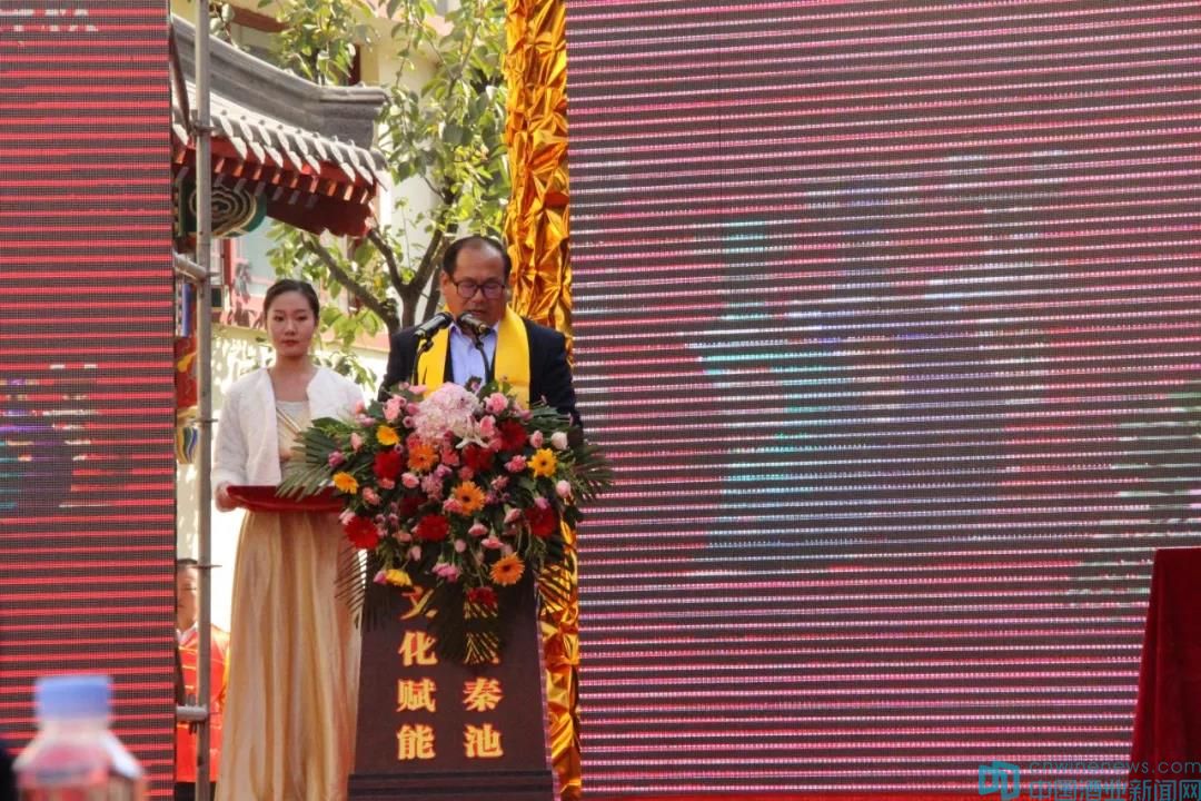 九時三十分,伴隨著《普天同慶》歌舞的明快節奏,第十屆秦池酒文化慶典活動徐徐拉開帷幕。此次活動由山東秦池酒業有限公司酒文化推廣人崔夢迪和知名主持人陳曦主持。