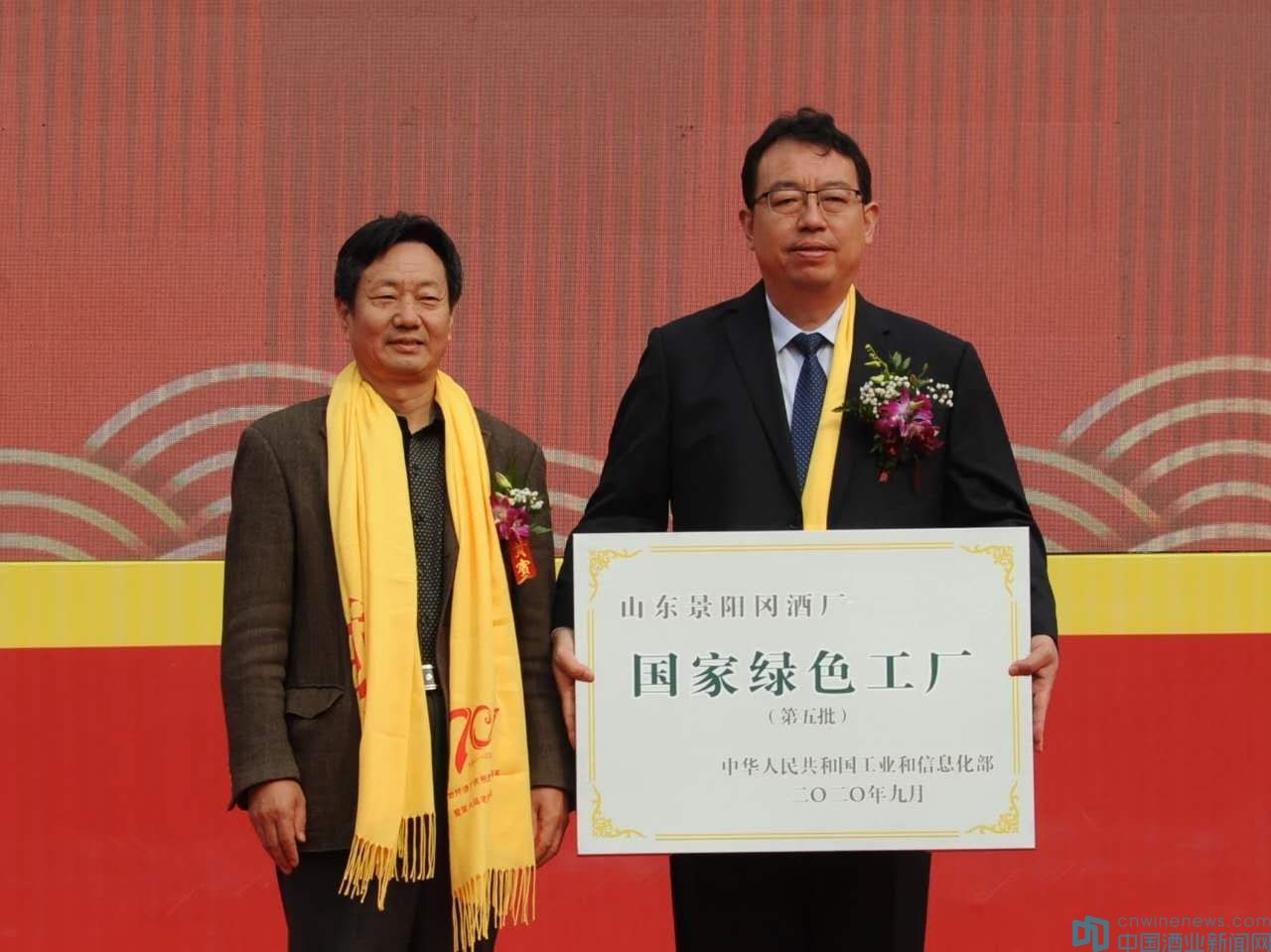 美酒的釀造,需要科技賦能,更需要綠水青山的饋贈。近年來,山東景陽岡酒廠有限公司公司踐行《中國制造2025》,全面推行綠色制造,努力構建高效、清潔、低碳、循環(huán)的綠色制造體系,被工信部認定為“綠色工廠”,聊城市工業(yè)和信息化局副局長陳玉庚為企業(yè)授牌。