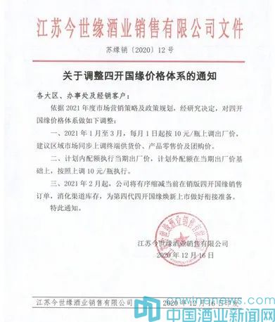 據了解,四開國緣在江蘇省內的政商務消費中有著比較高的接受度,終端、經銷商方面對于此次的漲價與煥新,紛紛表現出了積極的態度。因為,這不僅能夠助力四開國緣在主流消費價格帶中的地位更進一步,也又有利于提升品牌力鞏固市場份額,從而提升今世緣在高端、次高端的競爭能力。