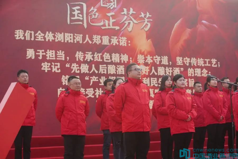 現場,瀏陽河酒酒體技術總工趙幸與瀏陽河20余名員工鄭重宣誓:勇于擔當,傳承紅色精神;崇本守道,堅守傳統工藝;牢記“先做人后釀酒,做好人釀好酒”的理念;銘記“產業報國,互利民生”的宗旨;自覺接受社會監督,認真聽取公眾意見,用心釀造每一瓶好酒。這也再次體現了瀏陽河對于品質的信仰,強化了廣大消費者對瀏陽河品質的認知。