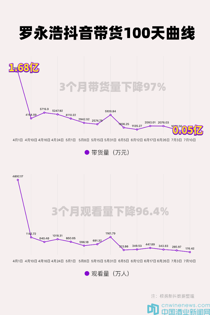 羅永浩7月的兩場直播,GMV已經降到了一千萬以下,這也就意味著,他直播100天,數據持續跳水,GMV下滑了97%。