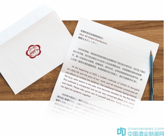 3月6日,汾酒在官微也發(fā)布《致汾酒全球經(jīng)銷商朋友的一封信》。信由山西汾酒股份有限公司黨委書記、董事長李秋喜和山西汾酒股份有限公司副董事長、總經(jīng)理譚忠豹聯(lián)合發(fā)出,用中、英、日三種文字,向身處疫情影響之下的全球經(jīng)銷商表達(dá)慰問,同樣呼吁廣大經(jīng)銷商對(duì)戰(zhàn)役必勝充滿信心。