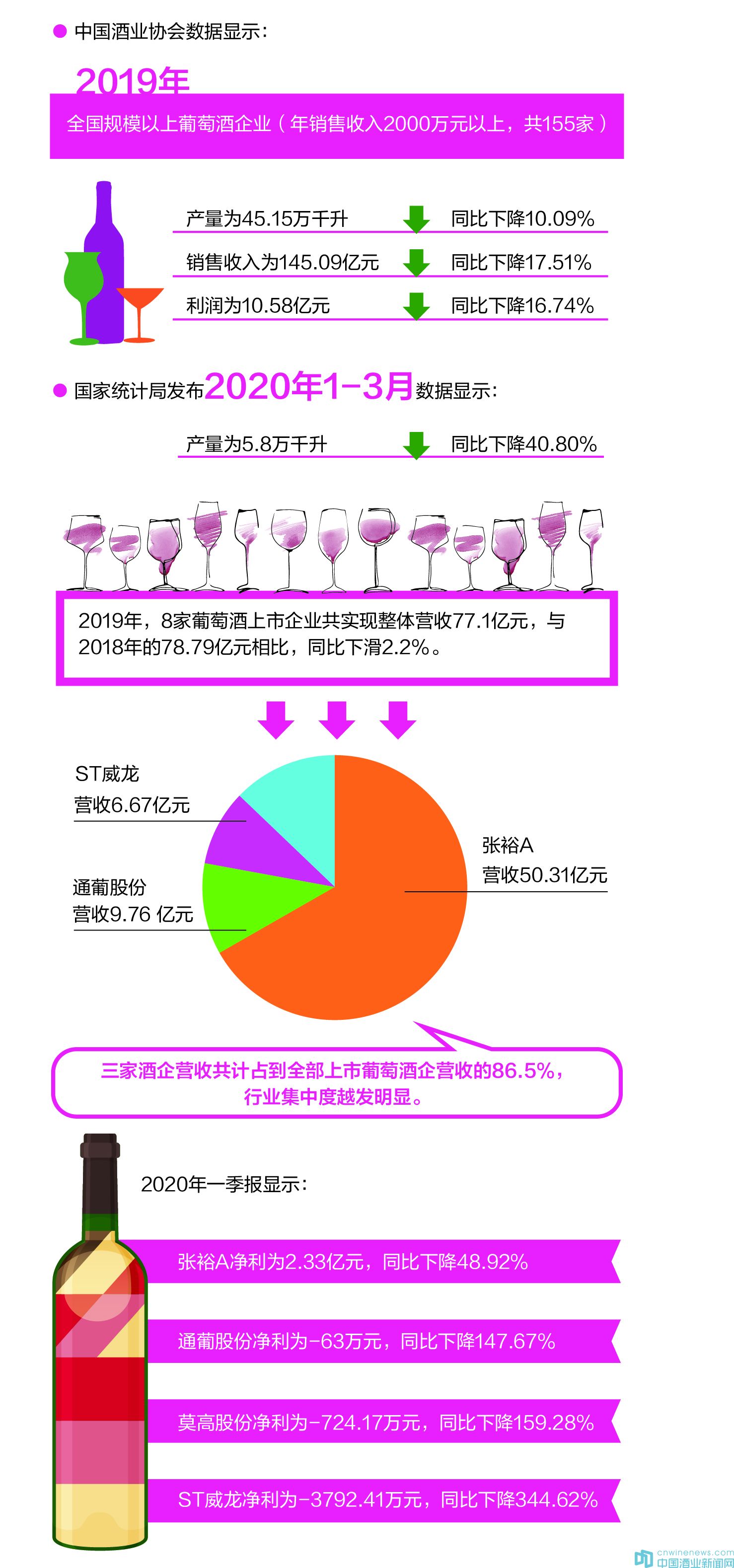 2020年一季報(bào)顯示,一季度,張?jiān)凈利為2.33億元,同比下降48.92%;通葡股份同期凈利為-63萬元,降幅達(dá)147.67%;莫高股份凈利為-724.17萬元,同比下降159.28%;威龍凈利為-3792.41萬元,跌幅超過300%……與隔壁白酒的“開門紅”相比,疫情為處于深度調(diào)整期的中國葡萄酒行業(yè)帶來的陣痛威力更大。