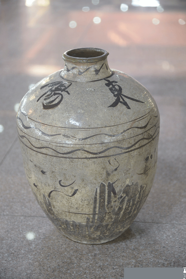 20世紀80年代中葉,正當古貝春白酒香飄四海、蜚聲華夏的時候,酒廠廠長張子文接到聊城地區博物館一位文物管理員的來信,函稱:該地區高唐縣華家塢村解放初曾出土過一個酒壇,上書“東陽好酒”四個字,武城在西漢時曾一度改置“東陽縣”,隸屬高唐州……。此事引起張子文的重視,很快組織工會主席戚萬周、攝影師呂文華和做文字宣傳工作的高步云,一行三人乘專車外出考察。他們根據來信中提供的線索,輾轉濟南,從山東省文展館大廳內隔著玻璃看到了書有“東陽好酒”四個大字的大陶瓷酒壇。酒壇為陶瓷器,高50公分,小壇口,肚大腰圓,可容白酒45公斤,壇色為米黃地,所繪花紋為紫黑色,線條簡捷、明快、流暢,圍繞壇口“東陽好酒”四個大字,繁體行書,挺勁灑脫,神馳筆酣。