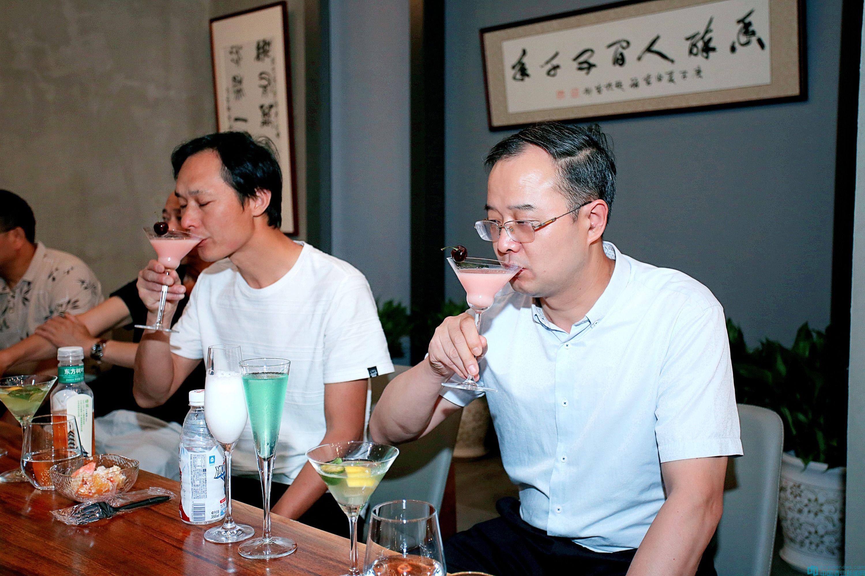 二樓體驗區,在一幅幅優美的國畫、書法、油畫襯托下,專業調酒師以五糧液為基礎搭配椰奶、飲料,調制出形態各異的雞尾酒,消費者在感受中國文化的同時品嘗五糧佳釀年輕時尚的味道。