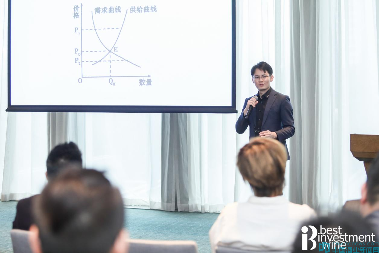 國家葡萄酒技術委員會專家委員、全球葡萄酒中國品鑒體系評委、廣東省酒類行業協會葡萄酒分會秘書長陳泳老師在大會上為來賓講解何為具有投資價值的葡萄酒及評定的幾個重大要素:系出名門、陳年能力強,且在陳年過程不斷升值、產品具備有稀缺性,產量有限、評分高、藝術價值高...等等。以木桐酒莊為例,從酒莊地理位置,土壤結構、種植、釀造到酒標設計到市場流通......陳老師以時間為軸線為來賓生動地做講解。