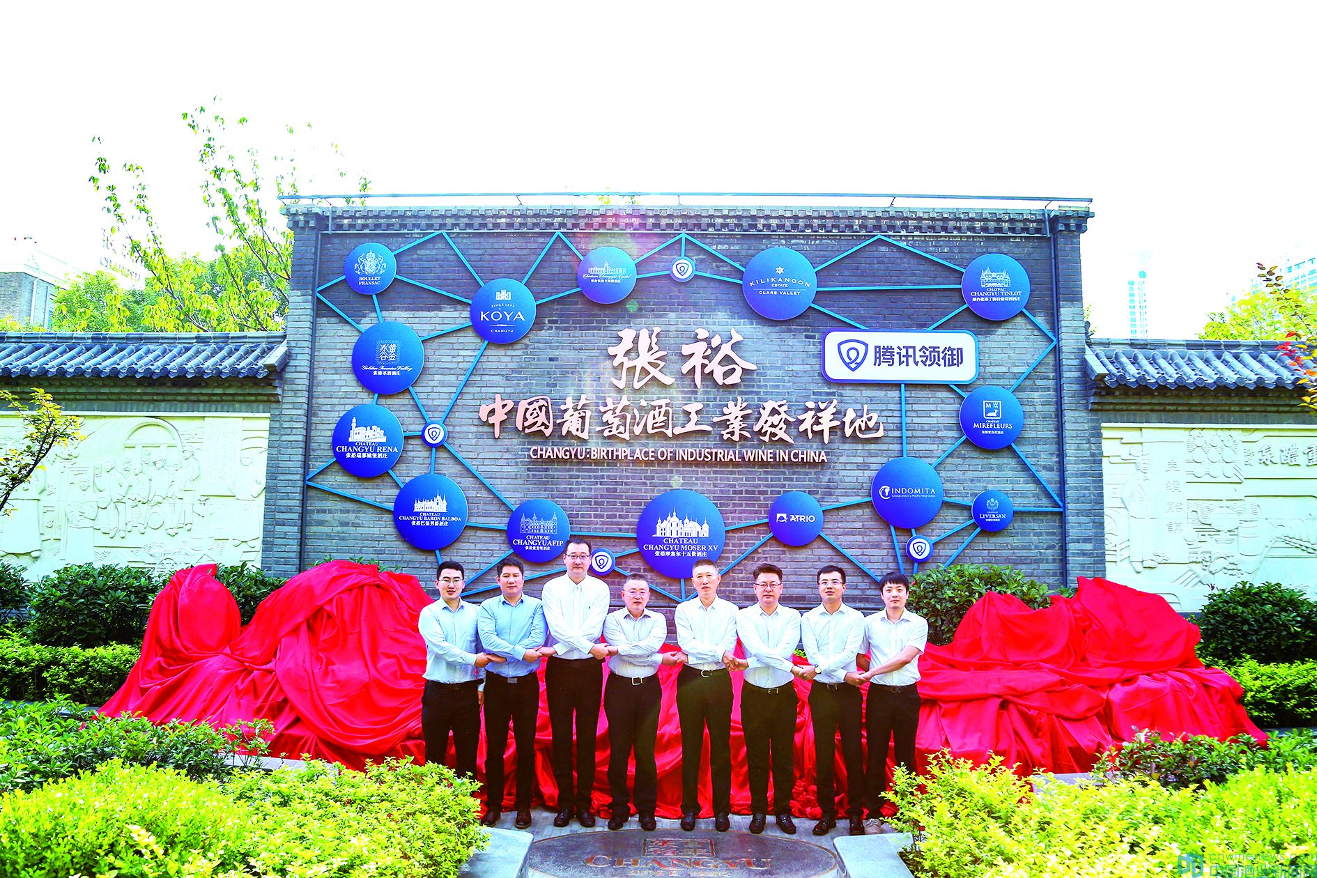 2020年7月30日早上8點,隨著煙臺張裕公司董事長周洪江和騰訊副總裁馬斌一起將手中的紅綢拉下,張裕&騰訊區塊鏈合作項目正式啟動。