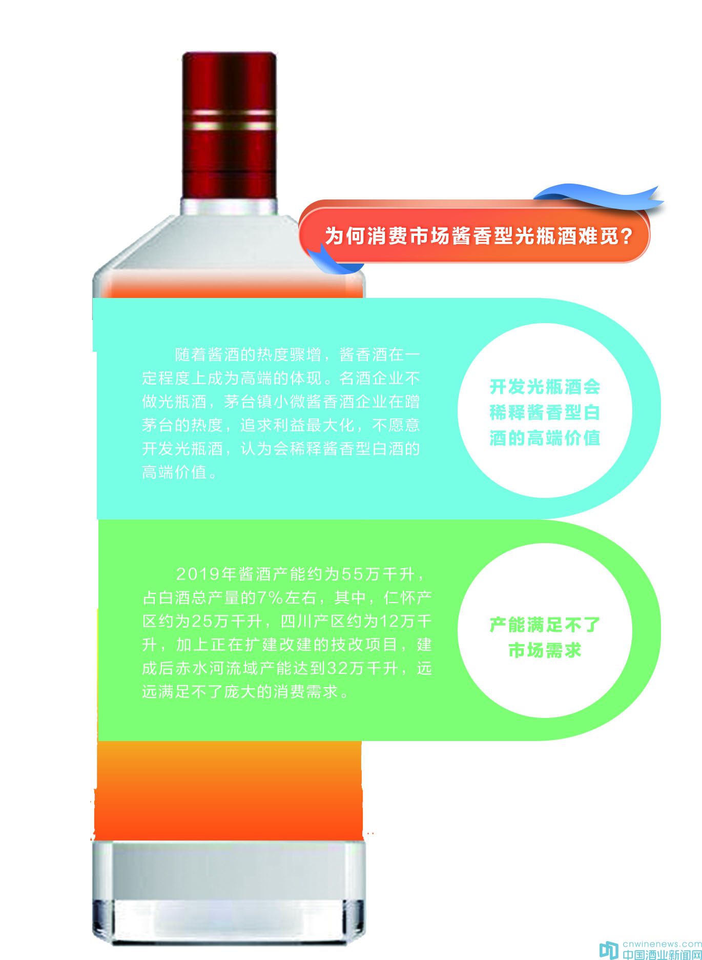 隨著醬酒的熱度驟增,醬香酒在一定程度上成為高端的體現。在此情況下,名酒企業不做光瓶酒,茅臺鎮小微醬香酒企業在蹭茅臺的熱度,追求利益最大化,不愿意開發光瓶酒,認為會稀釋醬香型白酒的高端價值。