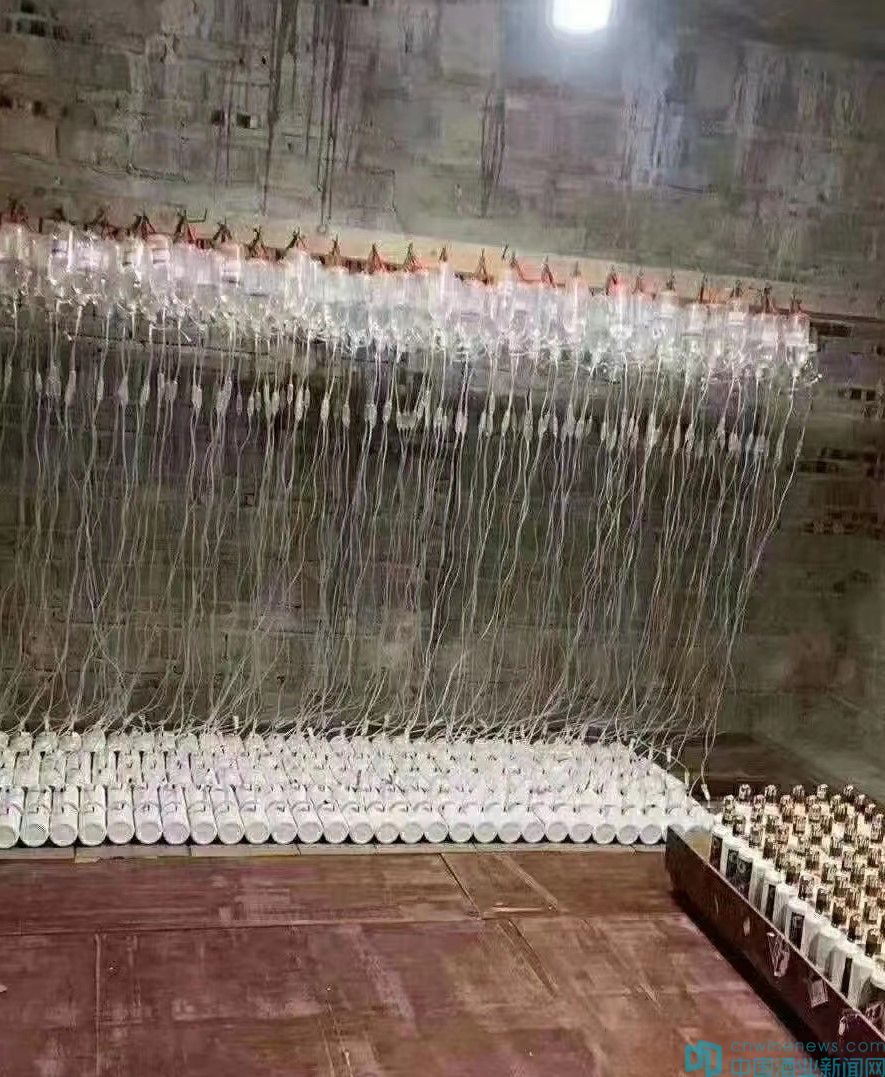 圖中看到的集中輸液的場景并不是在什么醫療機構,而是一個未經廠家授權,私自灌制茅臺酒的地方。