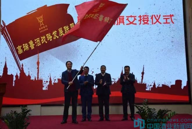 三年來,聯盟隊伍不斷擴大,影響力也日益劇增。本屆峰會上,青州云門酒業有限公司董事長汲英民當選為2021年輪值主席,成為高端魯酒聯盟新一年的企業家領袖。會上,姜祖模會長向汲英民董事長頒發了輪值主席聘書,并與劉振國副秘書長和張銘新董事長一起,將高端魯酒戰略發展聯盟會旗移交到汲英民董事長手中。