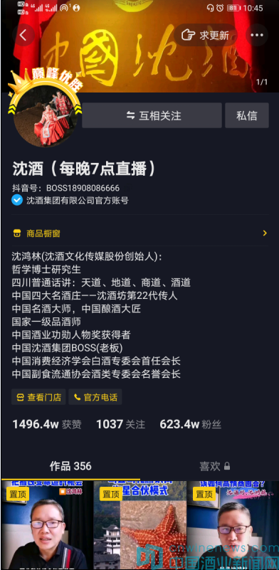 2016年9月20日,抖音上線,拉開短視頻娛樂新時代的帷幕;2018年,抖音火爆;2020疫情之年,抖音熱度更甚。而在這個大浪潮里,中國沈酒集團董事長沈鴻林憑借自編、自導、自演、自拍、自剪等,憑一口“川普”,在短短的幾個月內,從一個過去用智能手機卻只是停留在打電話發短信,連微信、QQ都不會用的人,搖身一變成為擁有600多萬粉絲的網紅大咖,開啟了酒類網絡平臺銷售的新模式,屢屢創下佳績。