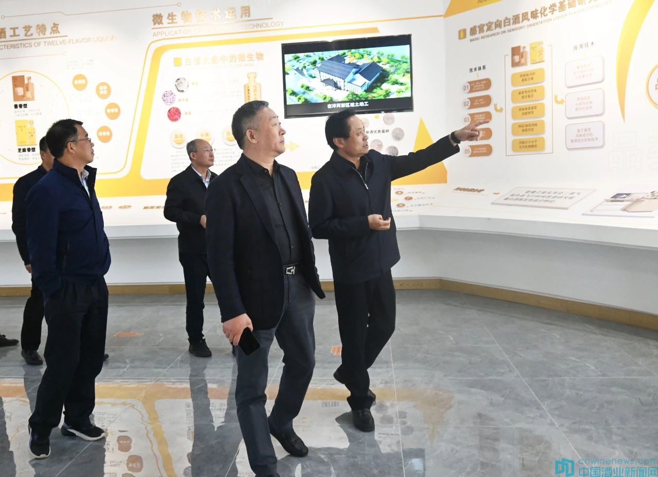 在張建良的陪同下,宋書玉一行參觀了乾隆江南科技文化館的游客接待區、酒文化展區、產品展銷區。了解了乾隆江南御酒莊園的建設布局和未來發展,以及乾醬產品的上市展銷情況。宋書玉一行對公司"酒業+科技+文化"的發展戰略表示贊同,對乾醬白酒的生產工藝和酒體風味的個性化創新給予肯定。