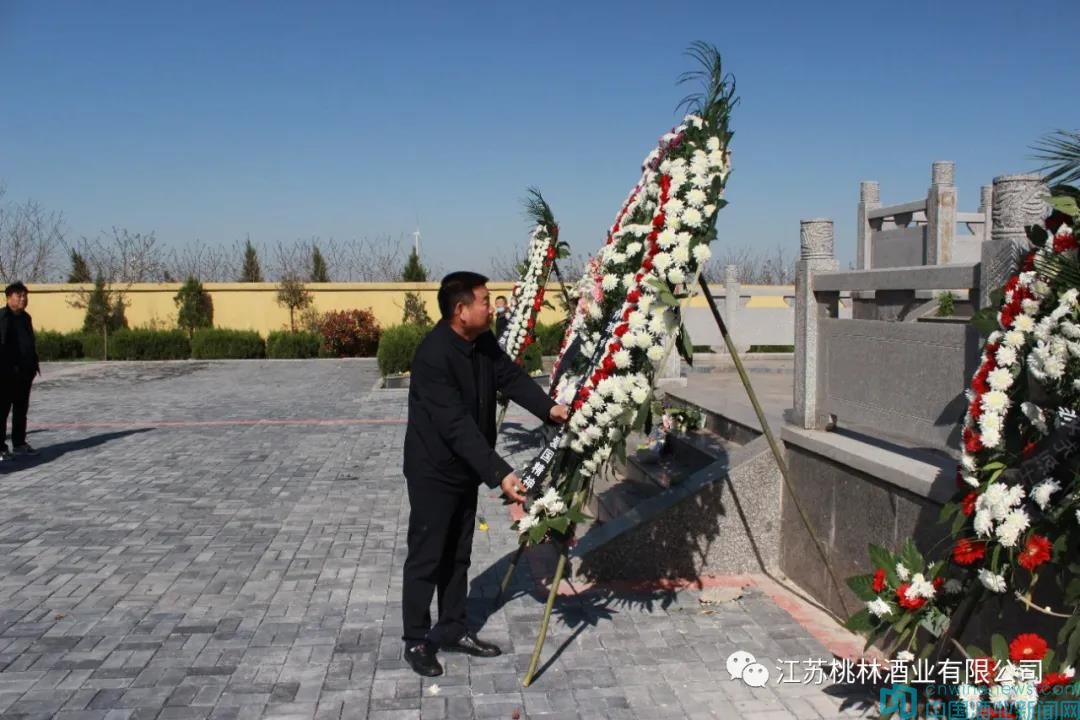 副總經理盧林河與馬董事長一起為烈士紀念碑敬獻了花圈,長長的挽聯書寫著“江蘇桃林酒業有限公司、江蘇桃林酒業黨支部敬挽”,“革命先烈浩氣長存,永垂不朽”。