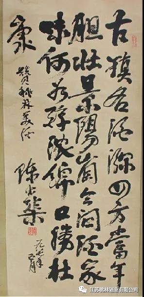 2019年6月1日,原南京副司令員徐承云中將也曾來公司參觀指導,不斷稱贊公司的傳承工藝,揮筆潑墨,題下“酒潤桃林 百年匠心”八個大字。