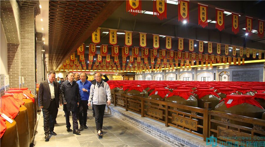 郭廣昌一行先后深入釀酒中心、包裝中心、養(yǎng)酒館、員工餐廳、員工公寓等實(shí)地考察。在濃香西北第一窖釀酒車(chē)間,考察團(tuán)一行觀看了“櫻花時(shí)節(jié),珍藏春釀”開(kāi)釀儀式,詳細(xì)了解了金徽酒的生產(chǎn)工藝,郭廣昌現(xiàn)場(chǎng)摘取品鑒并簽名封壇珍藏了金徽原酒。