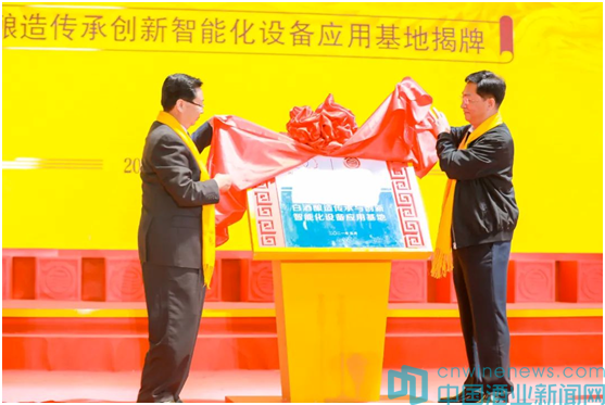 投產儀式上,在現場嘉賓的見證下,高全友與京城智通機器人集團總經理孫云權共同簽署了“白酒釀造智能化設備聯合研發合作”協議,并舉行了合作揭牌儀式,白酒釀造傳承與創新智能化設備應用基地正式落戶皇溝酒業。