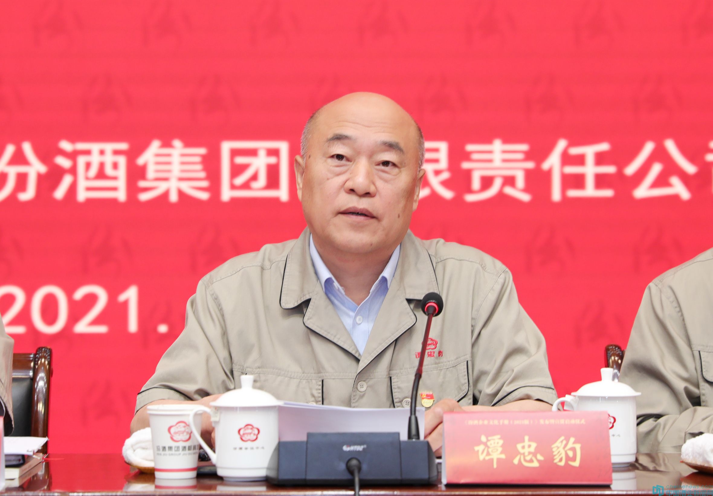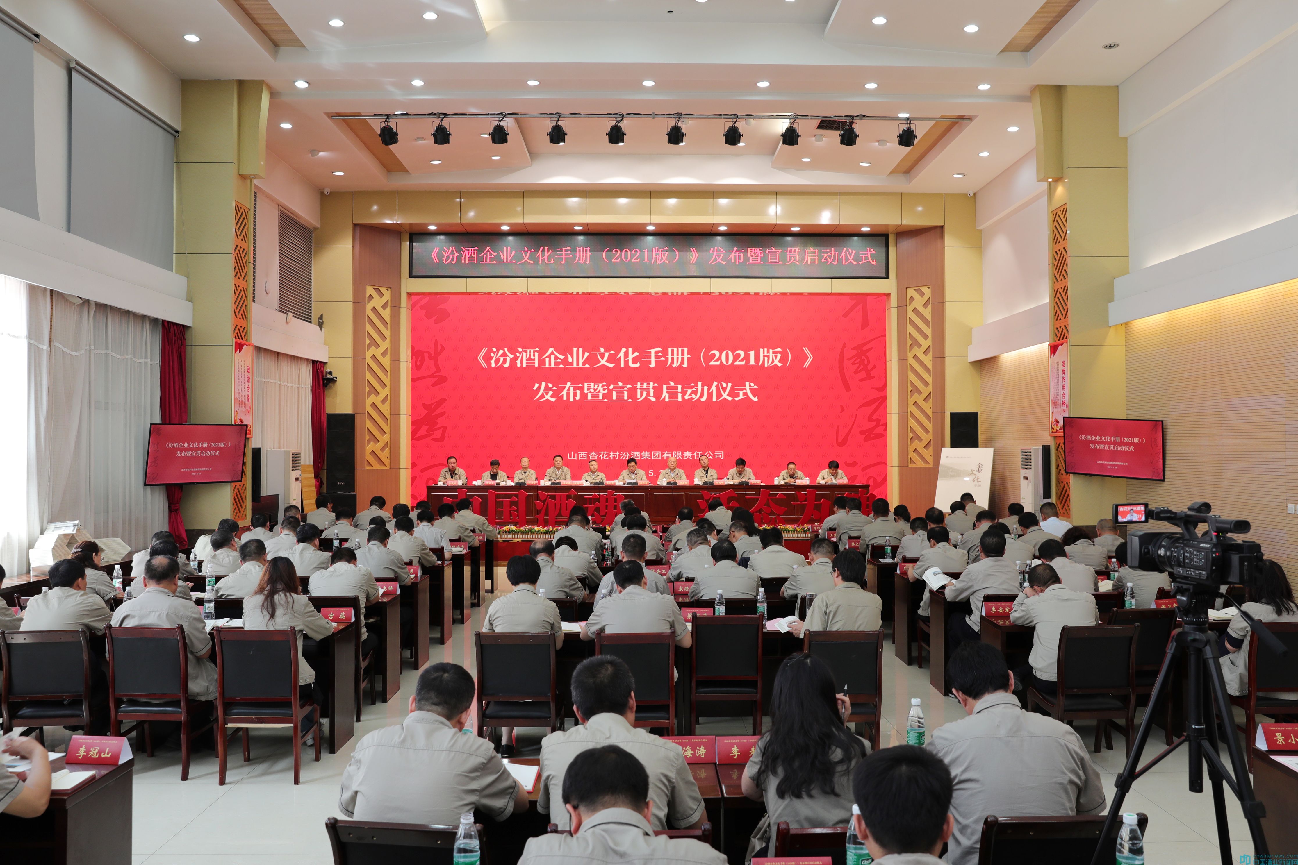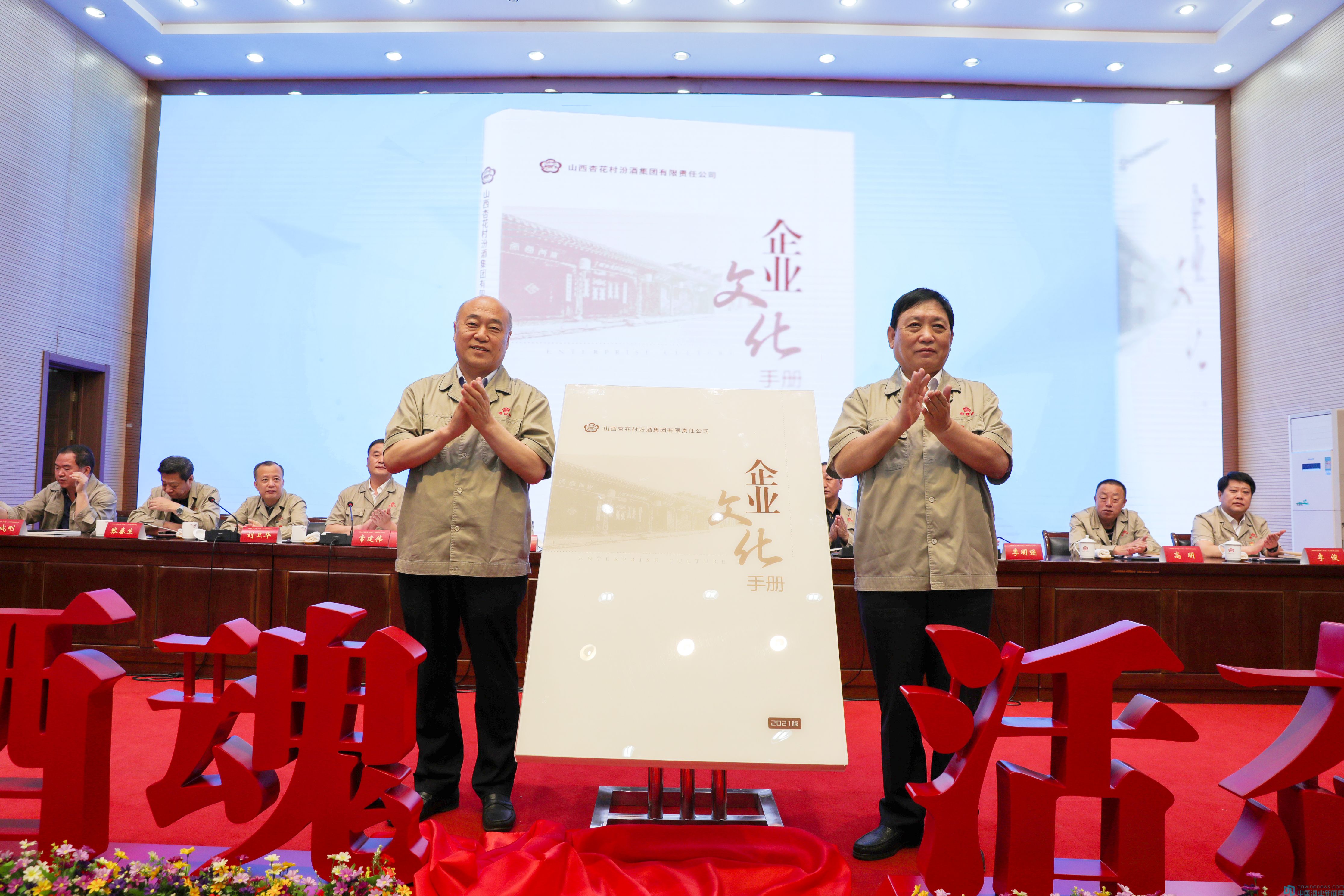 李秋喜、譚忠豹共同為手冊揭幕,《汾酒企業文化手冊(2021版)》正式發布。