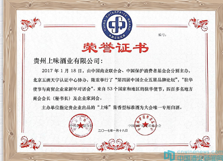 上味系列醬酒曾獲“宴請駐華使節用酒、一瓶有生命的酒、國際烈酒大獎賽金獎、第十九屆亞太零售商大會用酒……”等榮譽。