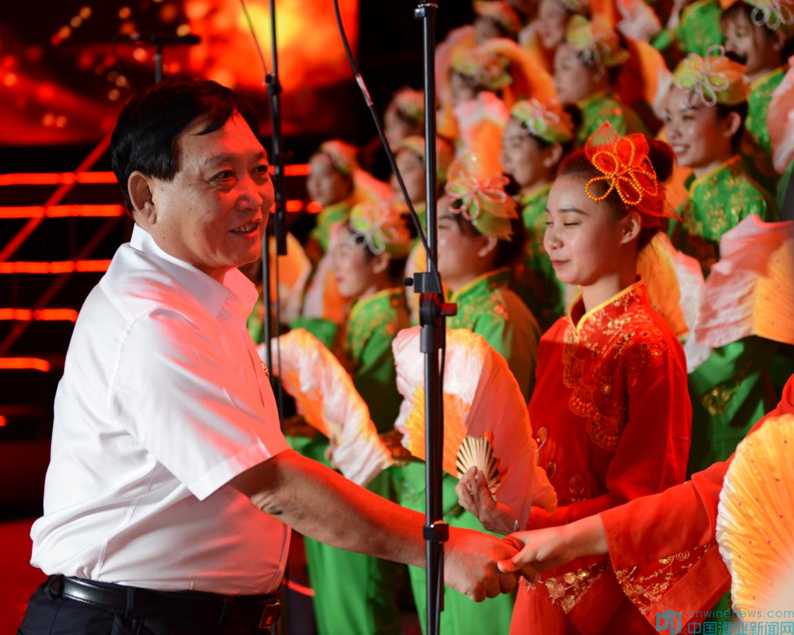 汾酒黨委書記、董事長李秋喜與參賽職工握手