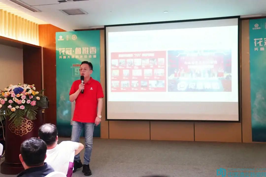 隨后,花冠集團花冠銷售公司常務副總黃楓先生進行《花冠魯雅香年份老酒解讀》主題演講。黃總從花冠集團年份老酒戰略、花冠魯雅香是什么及花冠魯雅香9年三個方面進行全方位解讀。他表示魯雅香型白酒是花冠集團長達30多年對白酒釀造技術持續創新與升級的結果,與菏澤的生態環境和牡丹資源一脈相承。通過現代生物工程技術,不斷實踐把牡丹花蕊和牡丹根皮等元素融入釀造工藝體系當中,釀造出既具有魯酒風格底蘊又具有獨特陳年味和牡丹植物芬芳的魯雅香型年份老酒。