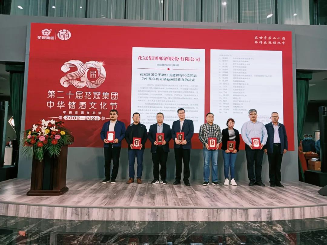 隨后,花冠集團副總經理,花冠銷售公司董事長鄭海峰先生宣讀了花冠集團關于聘任20位中華年份老酒新聞品鑒官的決定,并與花冠集團董事長劉念波先生共同為品鑒官們頒發證書。