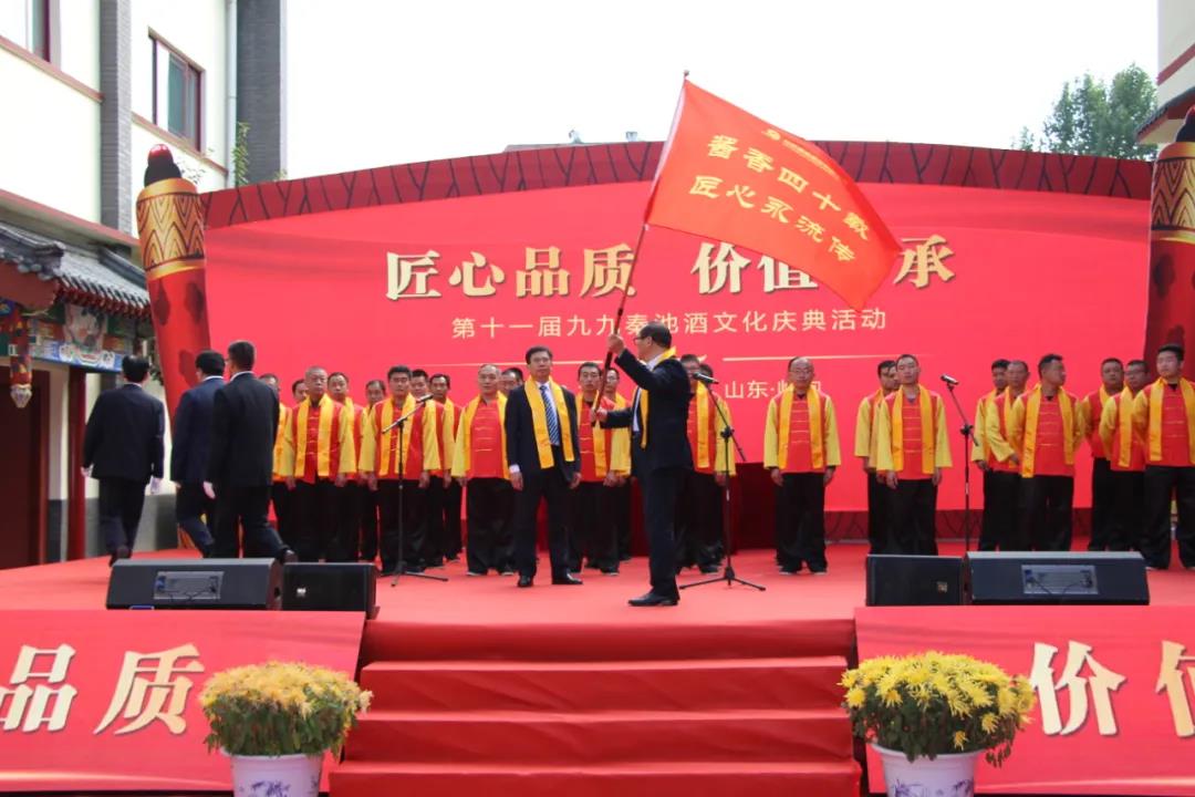 質量是企業的生命,是走向市場的通行證,借重陽佳節之際,質量誓師隆重舉行,由山東秦池集團董事長胡福東授旗,山東秦池酒業總經理助理、生產部門負責人張德忠接旗,并領誓秦池人的質量誓言。