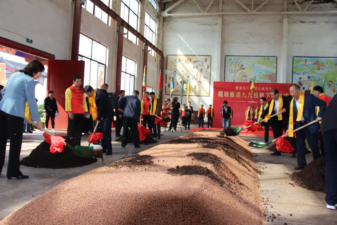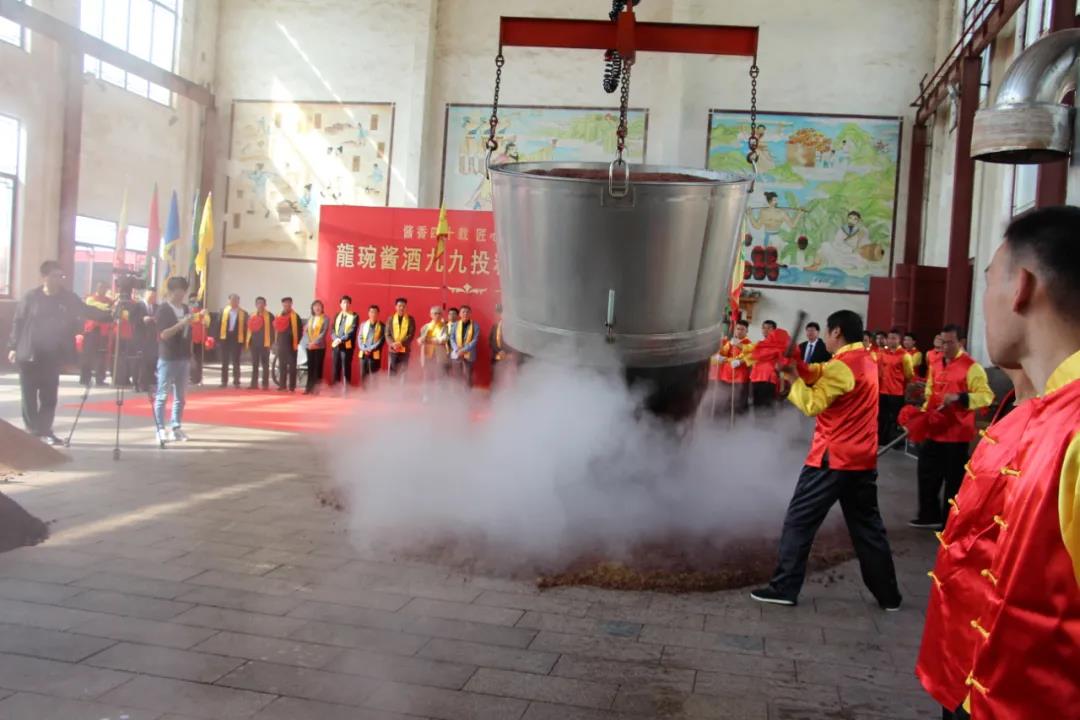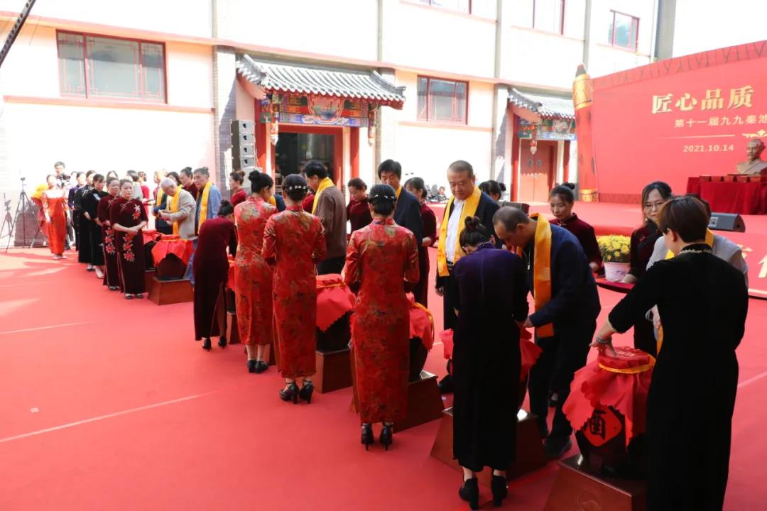 農歷九月初九是醬香酒投料、頭排摘酒和秦池酒業拜師祭祖的日子。在追祖溯源環節,通過請酒神、拜酒神、誦讀《祭酒神文》、誦讀《酒祖訓詞》、表演《樂舞祭》、職工同唱《酒神曲》等一系列莊重的祭祖儀式,表達了秦池人對釀酒始祖豐功偉績的追憶,并立志將傳統釀酒技法發揚光大的信心。秦池特地從酒窖中取出了一壇窖藏老酒,這壇酒是為了紀念2007年“秦池牌”榮獲“省輕工業協會十大自主創新品牌”而封存的美酒,與各位嘉賓共享。