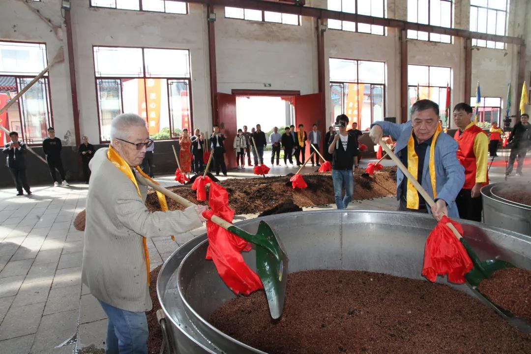 秦池能生產出品質過硬的產品并能聲明遠播,離不開一代代秦池人的堅守和品質傳承。在這個美好的日子里,秦池沒有忘記老釀酒職工為企業發展所做出的突出貢獻,兩位老職工鄭仁、張明玉都是70年代末到茅臺酒廠學習醬酒生產技術的釀酒工人,也是秦池酒釀造技藝的傳承人,四十多年來,這兩位老職工一直心系企業發展,參與企業龍琬醬酒工藝調整和技藝挖掘,為企業發展做出了突出貢獻,可謂德高望重,功勛卓著。山東秦池集團黨委書記、董事長胡福東先生為鄭仁、張明玉頒發秦池釀酒功勛杯和證書后,開始了秦池一年一度的醬酒投糧儀式。