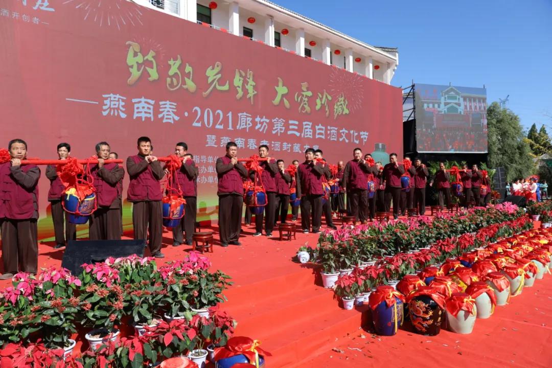 本屆廊坊市白酒文化節由河北省數字經濟聯合會指導,廊坊市文化旅游協會、廊坊市酒類商會主辦,河北省燕南春集團承辦,以“ 致敬先鋒,大愛珍藏”暨燕南春老酒?封藏大典為主題,旨在以慶祝偉大的中國共產黨百年華誕為契機,意在賡續紅色血脈,勇擔強國使命,傳承弘揚“匠心、愛心、精心”的釀酒情懷,做優、做強廊坊白酒產業,促進廊坊旅游事業的發展,同時,燕南春集團將通過一系列創新性戰略的陸續開展,讓企業在文化傳承之路上抒寫品牌騰飛的時代篇章。