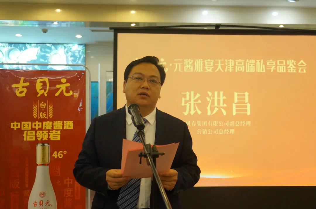 10月17日晚,在第105屆全國糖酒會召開前夕,古貝元·元醬雅宴天津高端私享品鑒會在天津鵬天閣酒店隆重舉行。山東省糖酒副食品商業協會會長薛劍銳,天津山東商會常務副會長劉崇榮,天津市德州商會會長楊紹磊,古貝春集團副總經理、營銷公司總經理張洪昌出席會議,在天津的山東、德州、武城老鄉,商會的各位會長、領導嘉賓和古貝春部分經銷商代表和媒體朋友們匯聚一堂,共品醬酒,共話友誼。