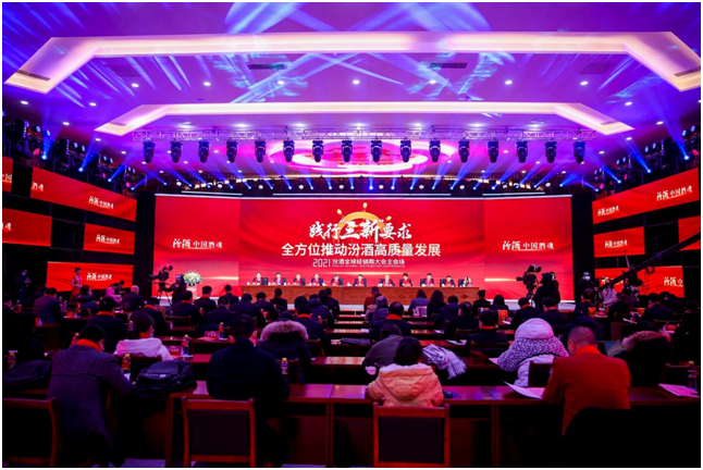 (12月26日,2021汾酒全球經(jīng)銷商大會(huì)現(xiàn)場(chǎng))