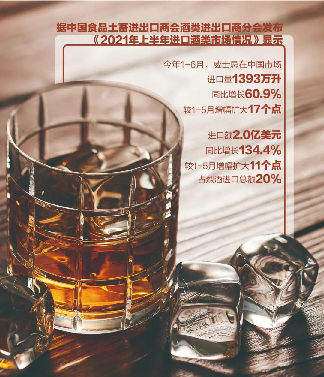 根據最新的2021年1~5月進口數據,威士忌進口貿易額達到1.5億美元,同比增長123%。