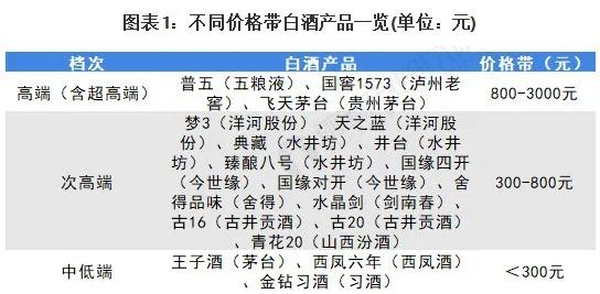 主要的高端白酒品牌代表產(chǎn)品有飛天茅臺(tái)、水晶五糧液、國(guó)窖1573、青花郎15年,國(guó)臺(tái)15年、酒鬼酒、水井坊、青花汾30、釣魚(yú)臺(tái)······其中茅臺(tái)是2000元以上超高端白酒代表,水晶五糧液、國(guó)窖1573、青花郎15年、國(guó)臺(tái)15年、釣魚(yú)臺(tái)等是1000元以上的高端白酒代表,各個(gè)品牌之間的價(jià)格競(jìng)爭(zhēng)和存量競(jìng)爭(zhēng)沖突較小,彼此都有自己的價(jià)格帶和消費(fèi)群體,因此互補(bǔ)侵犯而且能夠共同發(fā)展。