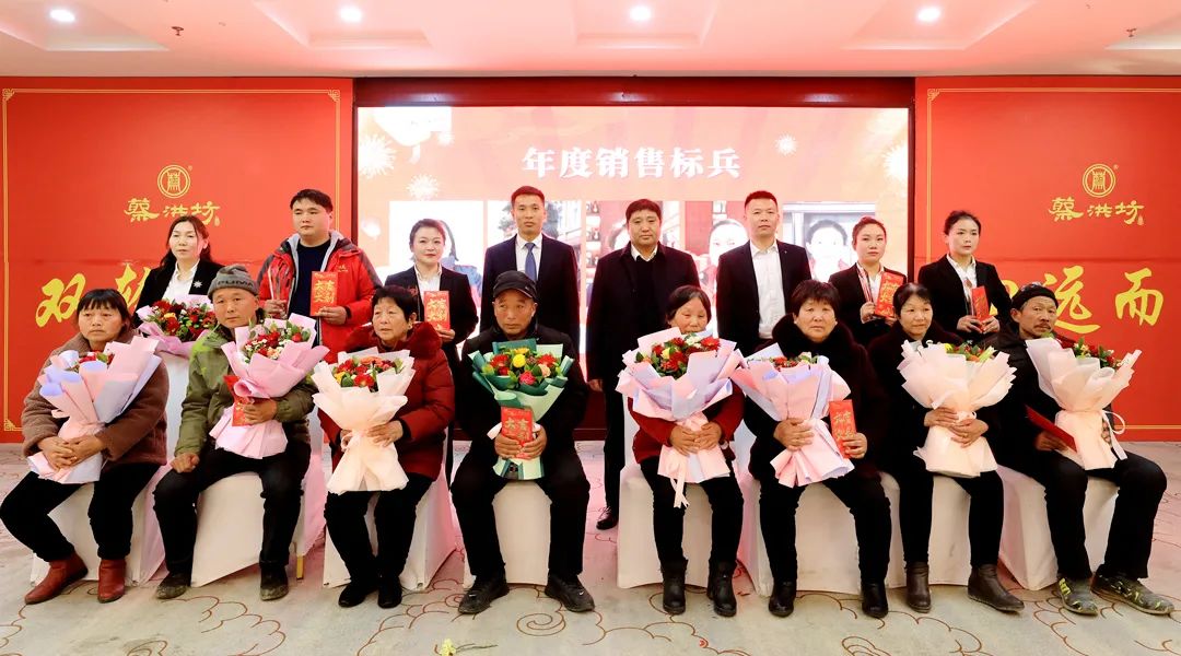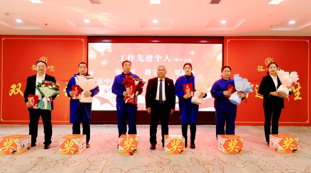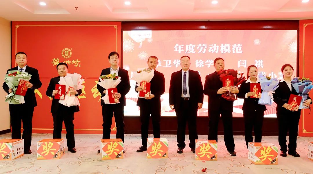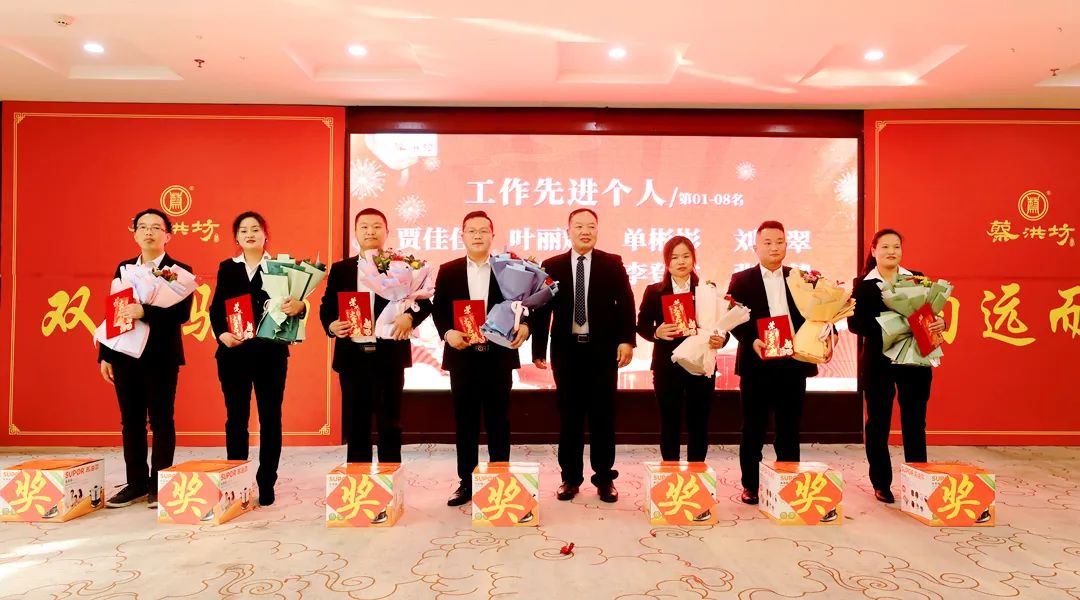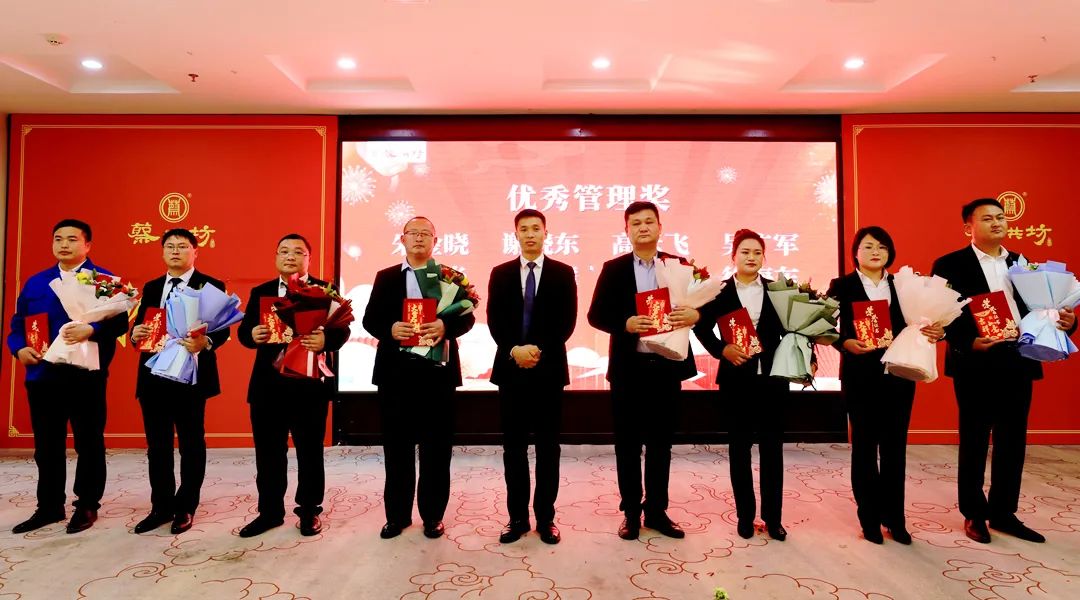 在表彰環(huán)節(jié),公司黨支部書記黃成國宣讀了《蔡洪坊酒業(yè)關(guān)于表彰2021年度工作先進(jìn)個(gè)人和先進(jìn)集體的決定》。會議現(xiàn)場,對年度勞動模范、工作先進(jìn)個(gè)人、最佳進(jìn)步明星、最佳銷售支持、銷售會戰(zhàn)之星、優(yōu)秀管理者、年度銷售標(biāo)兵、年度優(yōu)秀團(tuán)隊(duì)進(jìn)行了隆重的表彰獎勵。