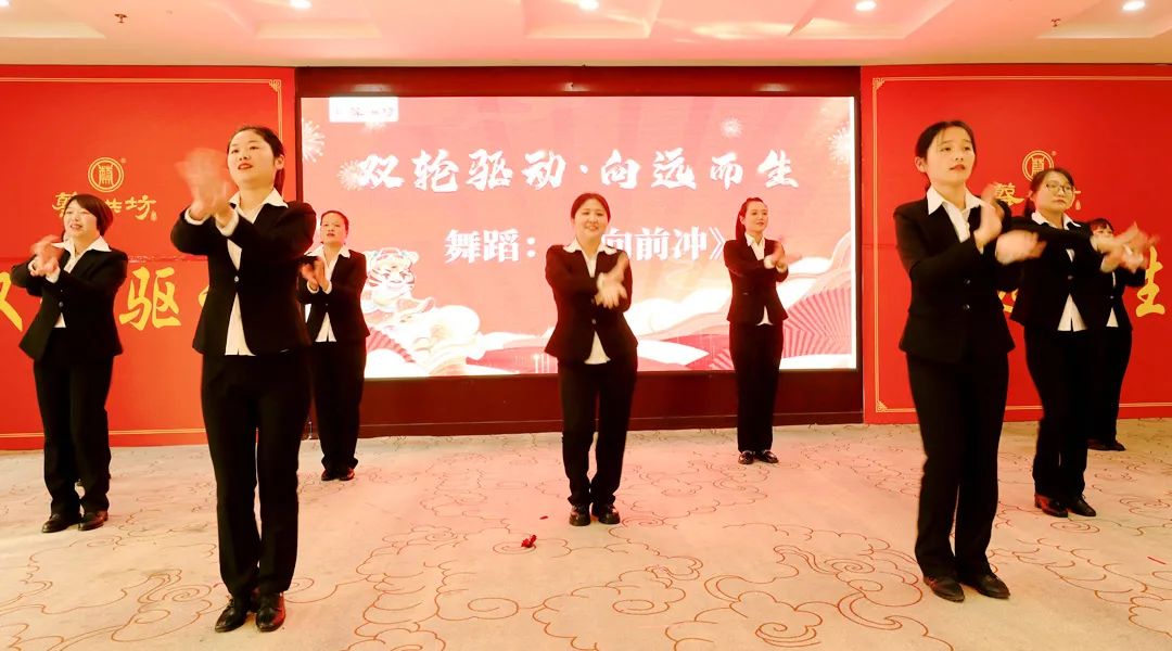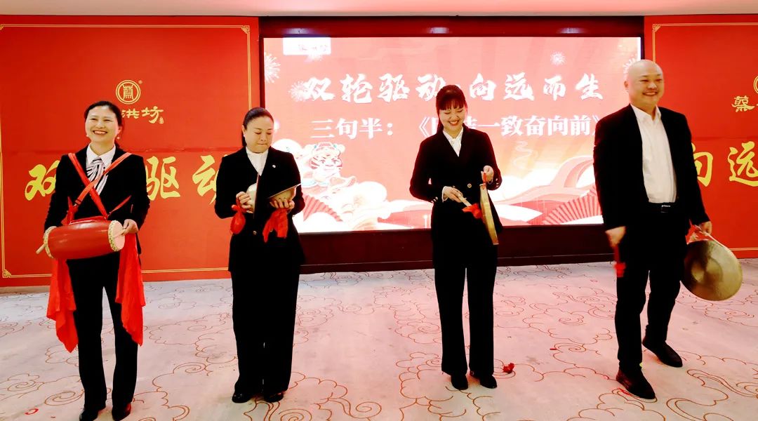 2月21日下午,河南蔡洪坊酒業(yè)有限公司2021年度企業(yè)年會在新蔡縣飛龍中州國際飯店盛大舉行。蔡洪坊酒業(yè)董事長李華偉、黨支部書記黃成國、總經(jīng)理王永華、總工程師劉洪亮、財(cái)務(wù)總監(jiān)周振禮,蔡洪坊酒銷售公司總經(jīng)理佟樹偉、市場部總監(jiān)魏楨鈺、濃香事業(yè)部品牌總監(jiān)宋擁軍、醬香事業(yè)部品牌總監(jiān)李鵬飛、鄭州銷售大區(qū)營銷總監(jiān)習(xí)同山,生產(chǎn)公司、銷售公司全體員工及特邀員工家屬代表逾300余人共聚一堂,共襄盛會。